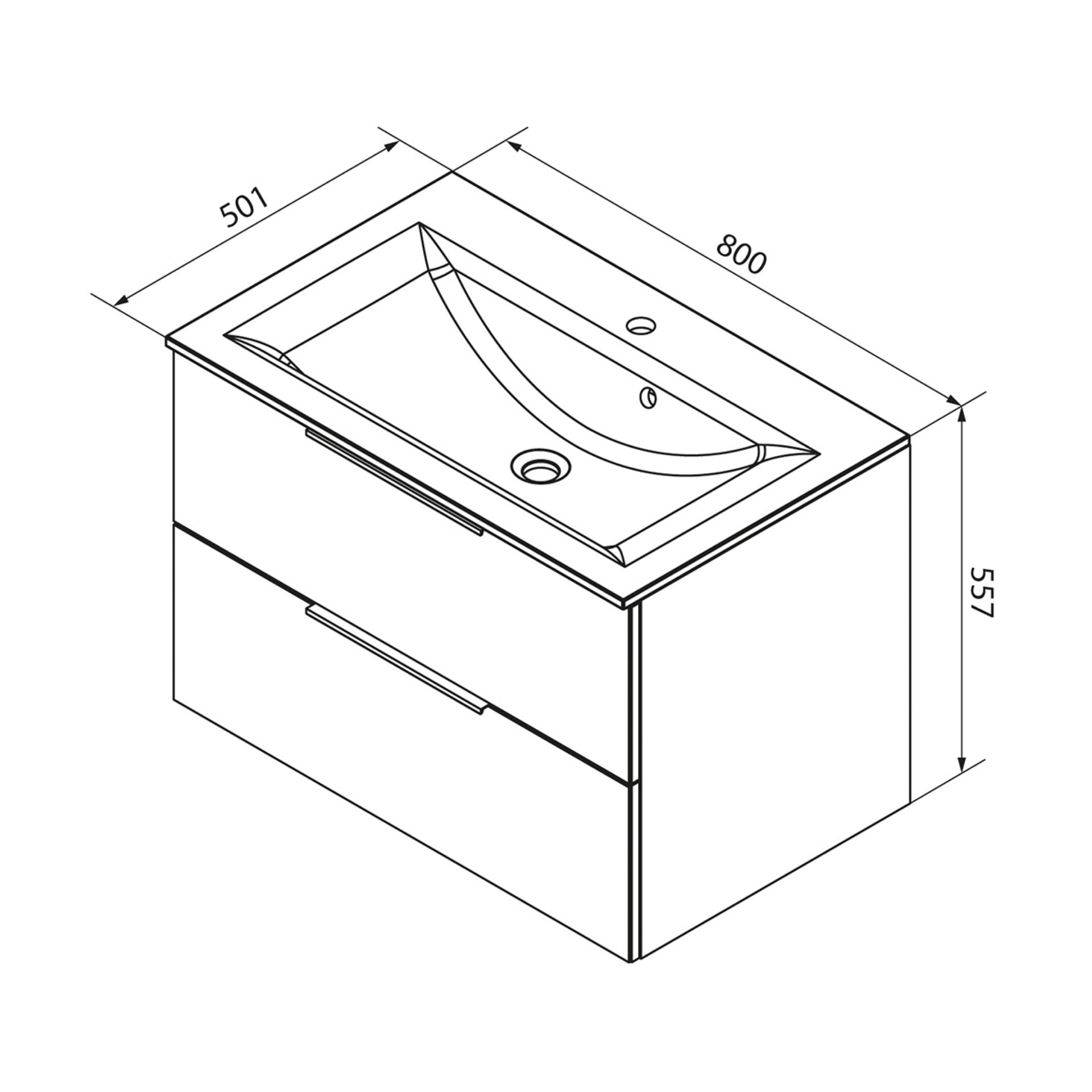 - Ausstattung: 2 Schubladen, 2 Griffleisten Aluminium, Soft-Close-System