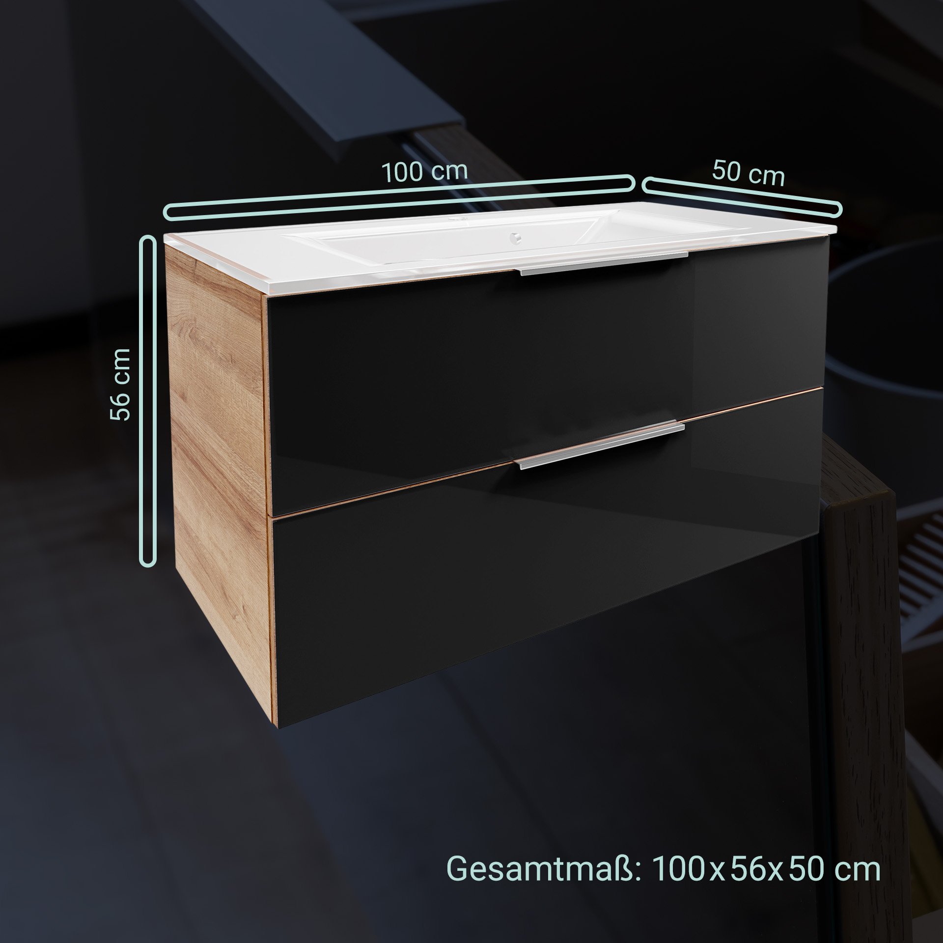 2. Waschtischunterschrank Asteiche/Glas Anthrazit