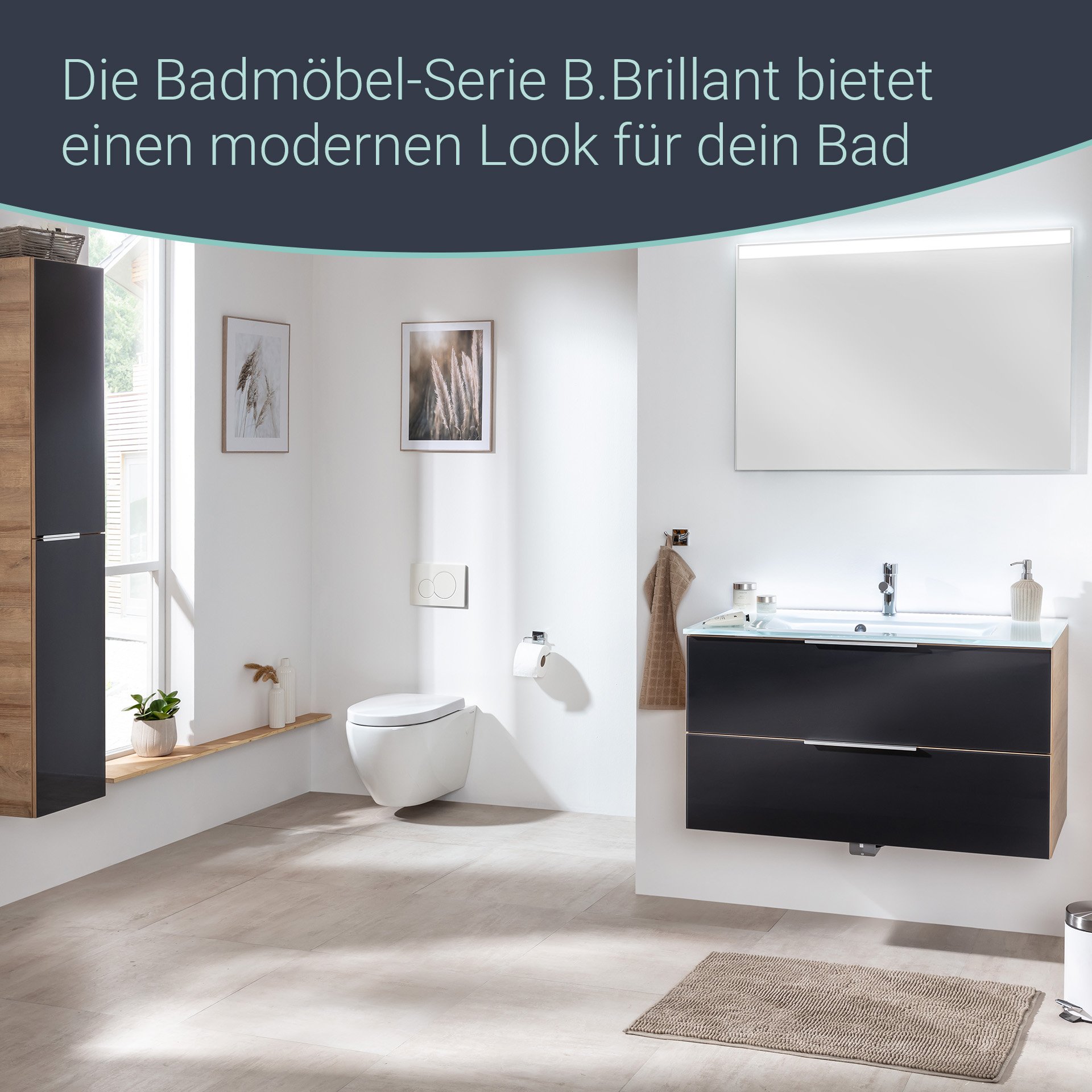 Das Wort "brillant" stammt aus dem 18 Jahrhundert und bezeichnet einen geschliffenen Diamanten. Der Name ist Programm für die neue Serie B.BRILLANT von Fackelmann. Glänzende Glasfronten verleihen den Möbeln eine atemberaubende Ausstrahlung. Mit dem 2-teiligen Set bestehend aus Waschtischunterschrank mit Glasfront in Anthrazit und Glaswaschtisch in Weiß holst Du Dir diese Brillanz in Dein neues Badezimmer. Doch nicht nur das. Glasbecken in Weiß und Front in glänzendem Anthrazit bieten einen Blickfang der Extraklasse. 2 Schubladen mit einer Breite von 100 cm stellen Dir ausreichend Stauraum für Deine Badaccessoires zur Verfügung. Die Front in Anthrazit aus lackiertem Glas bildet einen brillanten Kontrast zu dem der Natur angelehnten Korpus in Ast-Eiche. Den weißen Waschtisch aus Glas kannst Du mit der Waschbeckenbeleuchtung eindrucksvoll illuminieren. Kein Stromanschluss nötig! Ein batteriebetriebener Bewegungsmelder mit Sensor schaltet die Beleuchtung beim Betreten des Bades ein und automatisch wieder aus. Dieses Accessoire ist nicht im Lieferumfang enthalten und muss separat bestellt werden. (Art.Nr. 86303). Badmöbel von Fackelmann werden mit viel Liebe zum Detail in Deutschland hergestellt. Das Fackelmann B.BRILLANT Badmöbel Set 2-teilig, 100 cm breit, Anthrazit Glas/Braun hell, Glas Weiß ist zerlegt und wird mit einer leicht verständlichen Aufbauanleitung geliefert.