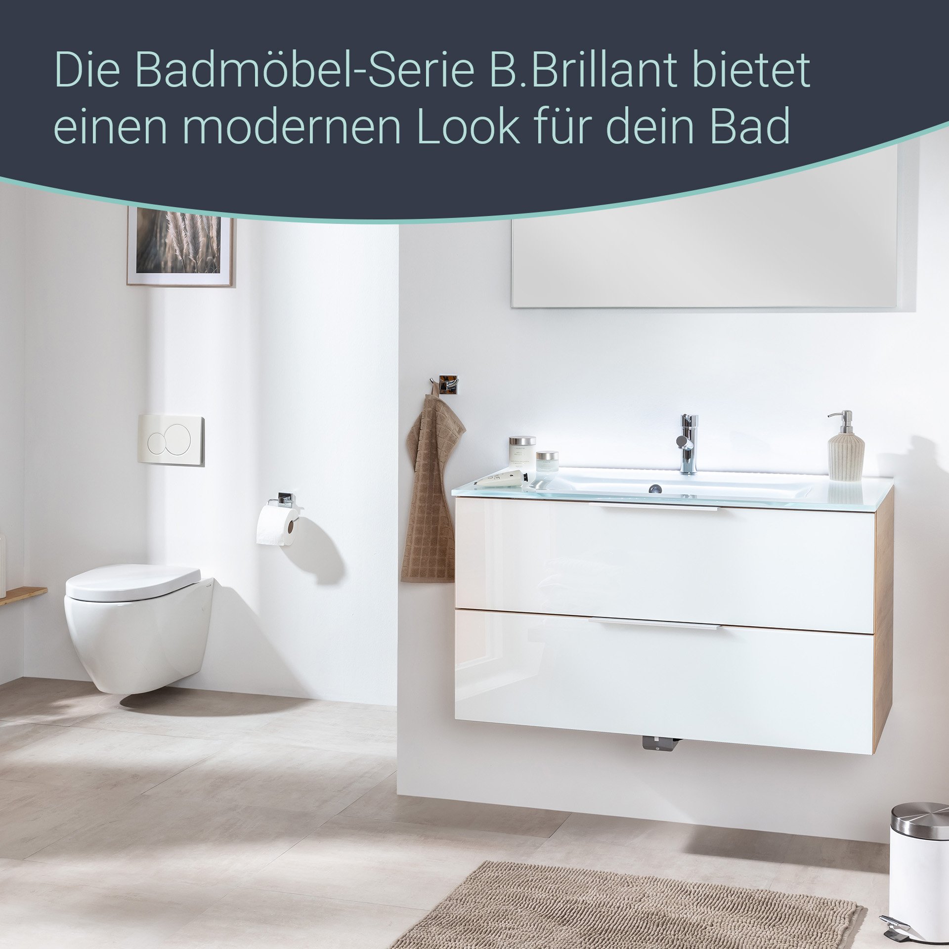 Fackelmann B.Brillant Badmöbel Set 2-teilig 100 cm breit, Weiß Glas/Braun hell, Glas Weiß