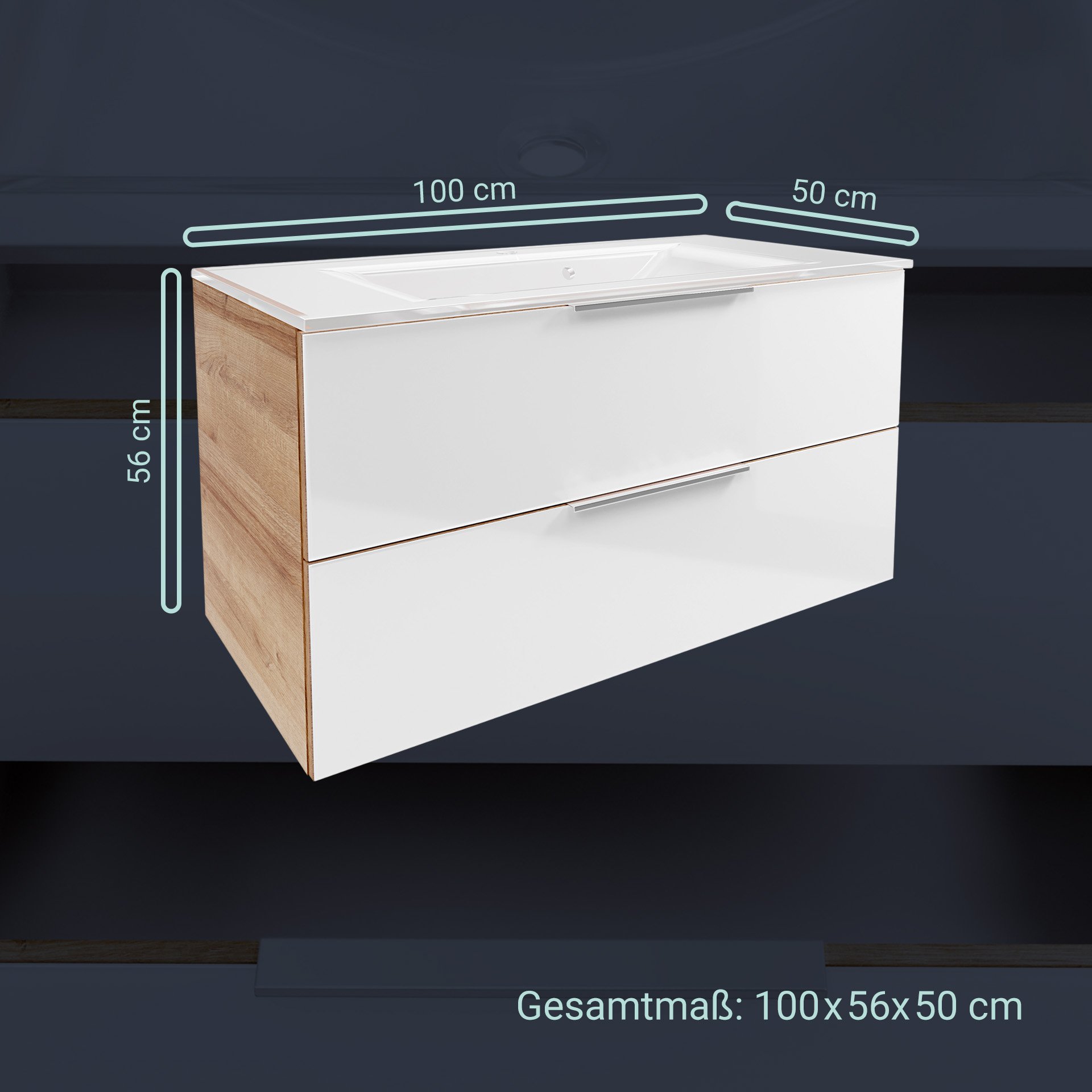 2. Waschtischunterschrank Asteiche/Glas Weiß, (Art.-Nr. 84003)