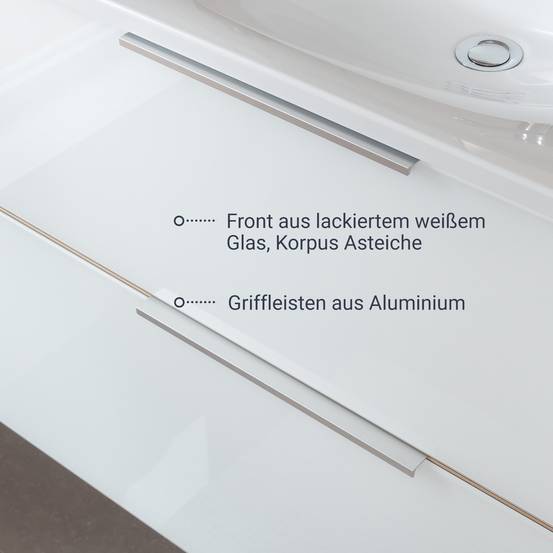 - Ausstattung: 2 Schubladen, 2 Griffleisten Aluminium, Soft-Close-System