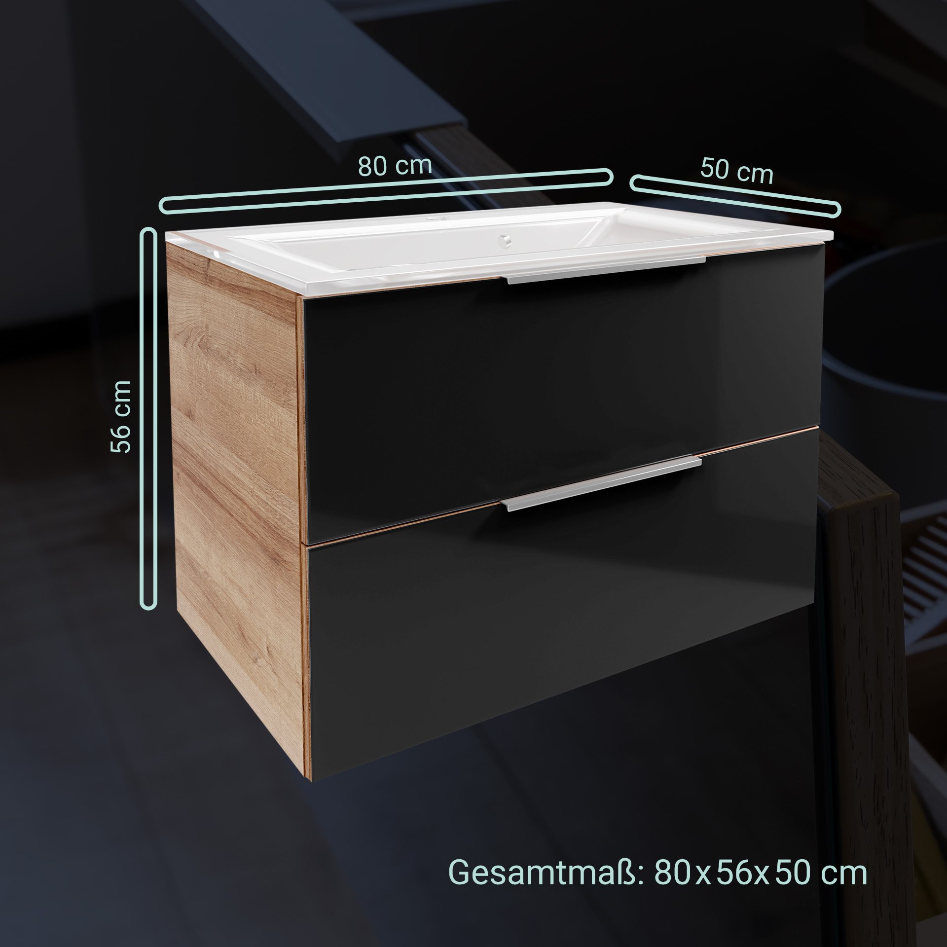 2. Waschtischunterschrank Asteiche/Glas Anthrazit