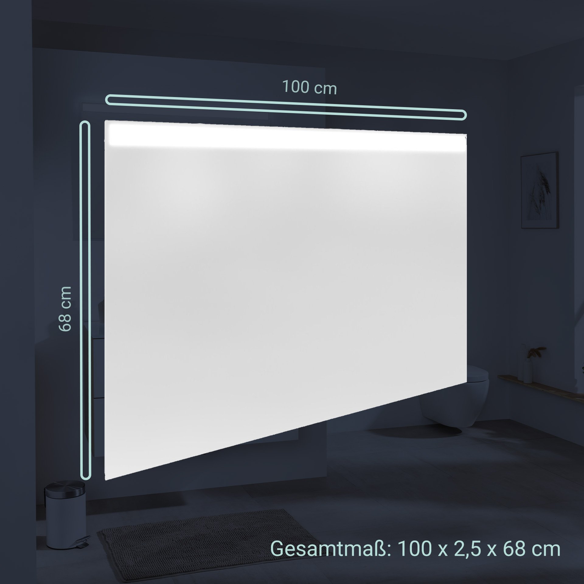 - Maße: 100 cm Breite, 68 cm Höhe und 2,5 cm Tiefe
