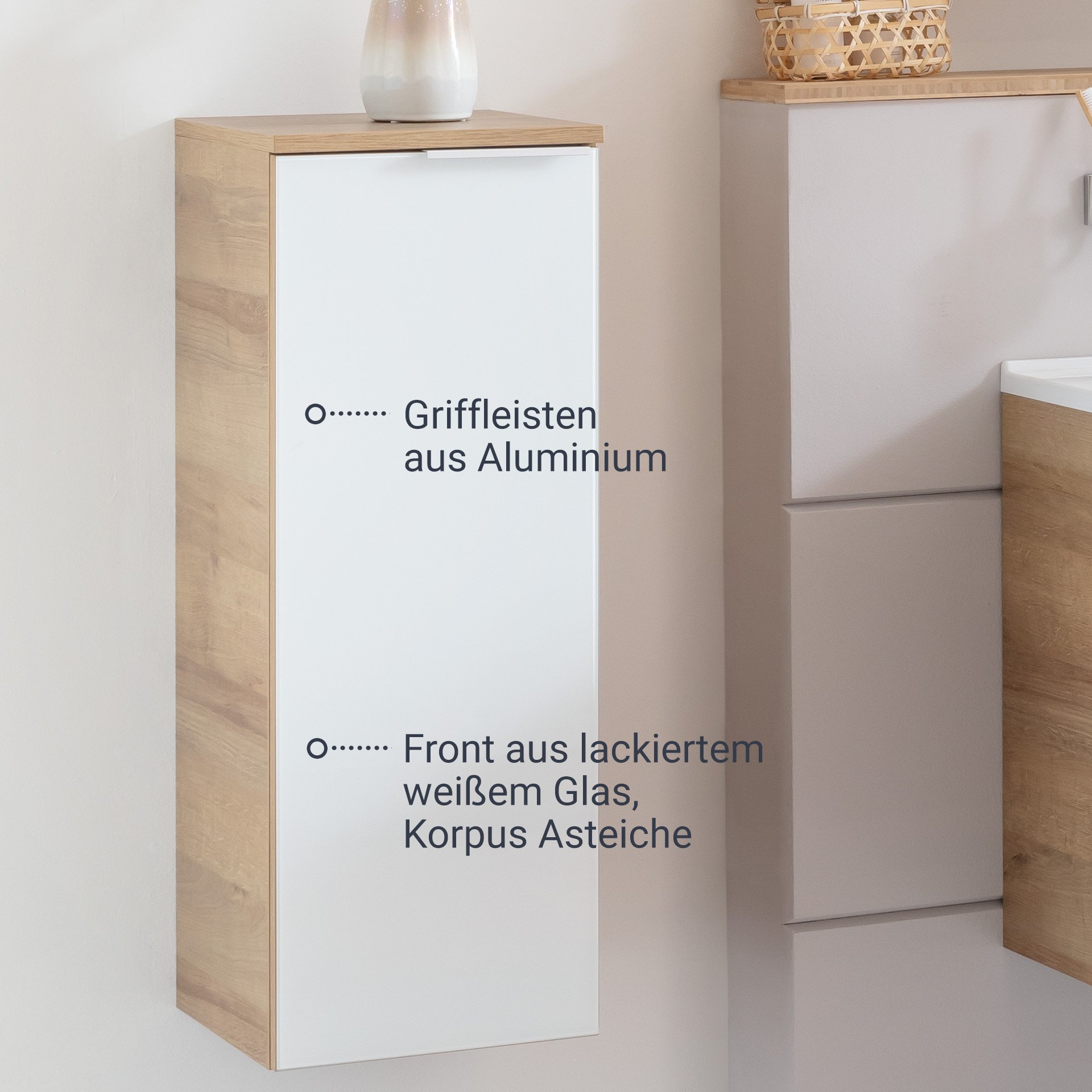 Fackelmann B.BRILLANT Midischrank 30 cm breit, Weiß Glas/Braun hell