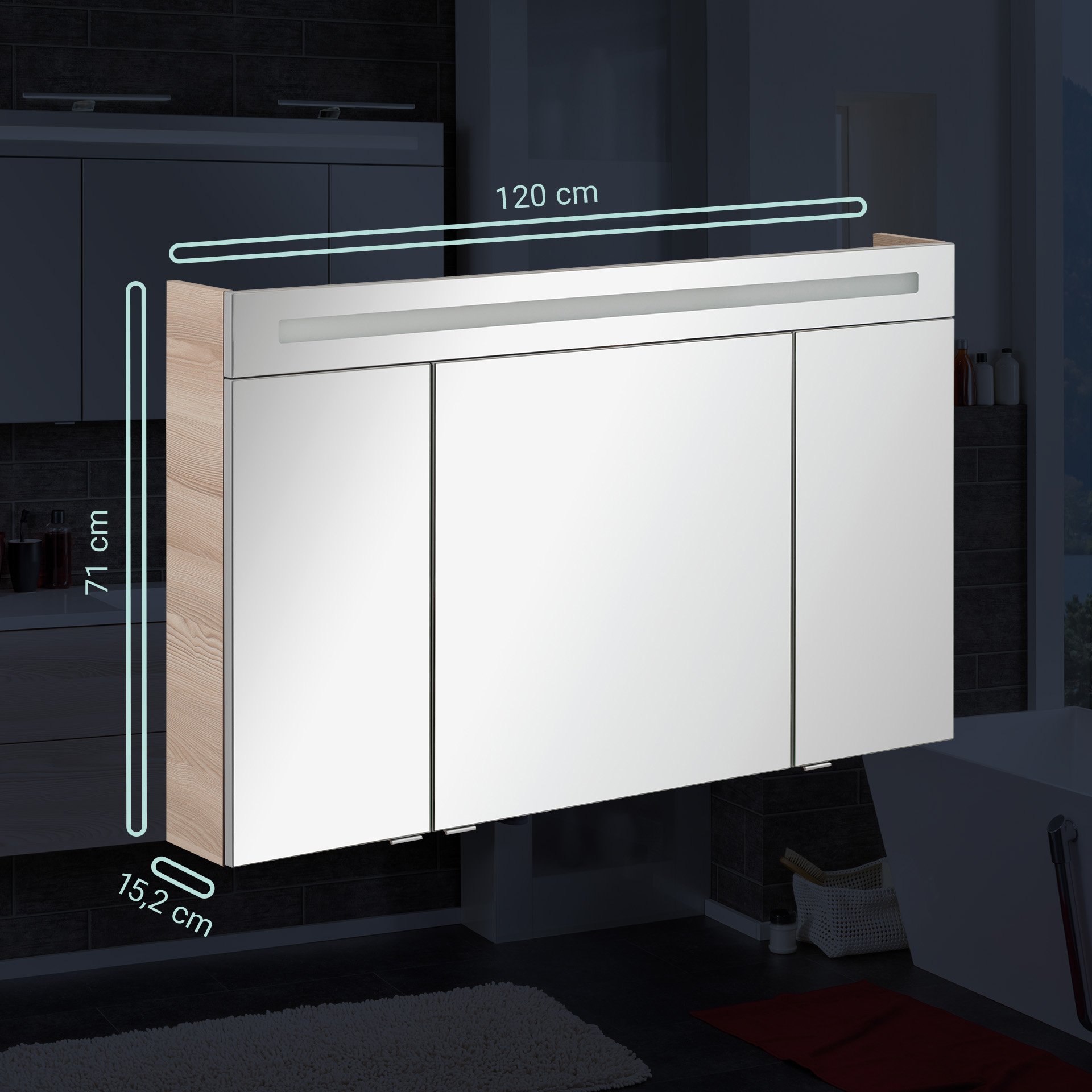 Fackelmann B.CLEVER LED Spiegelschrank 120 cm Braun hell