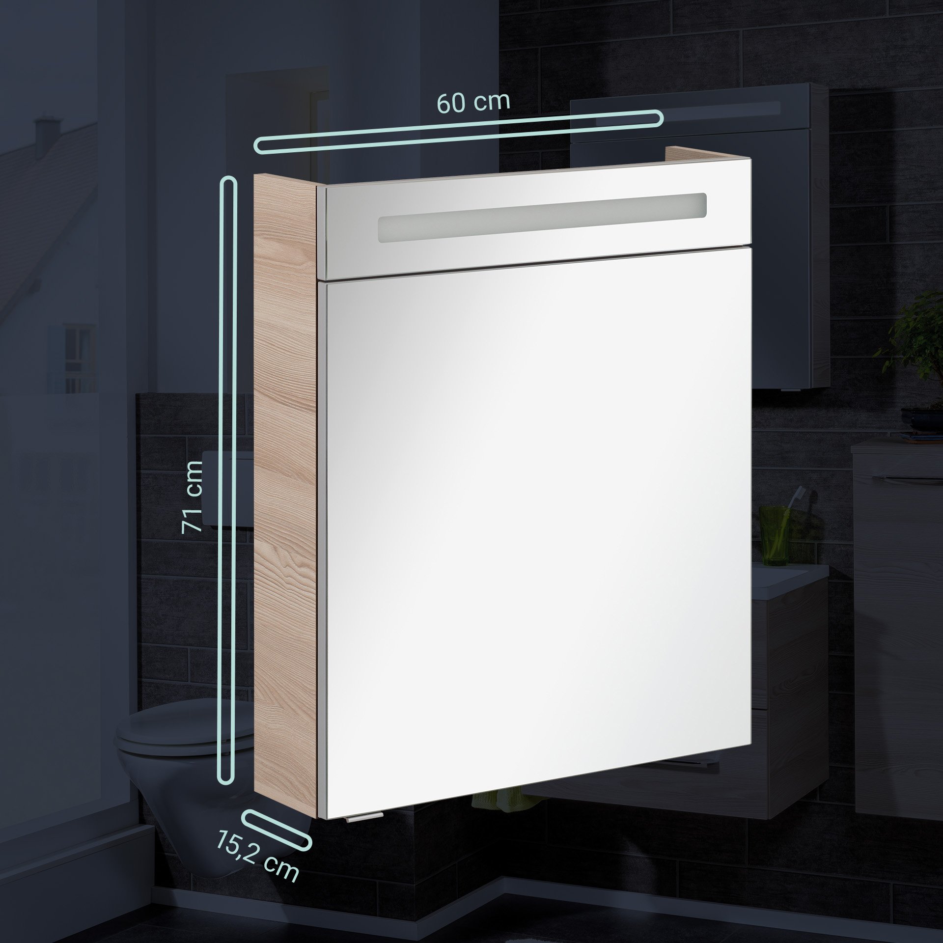 Fackelmann B.CLEVER LED Spiegelschrank 60 cm breit, Braun hell