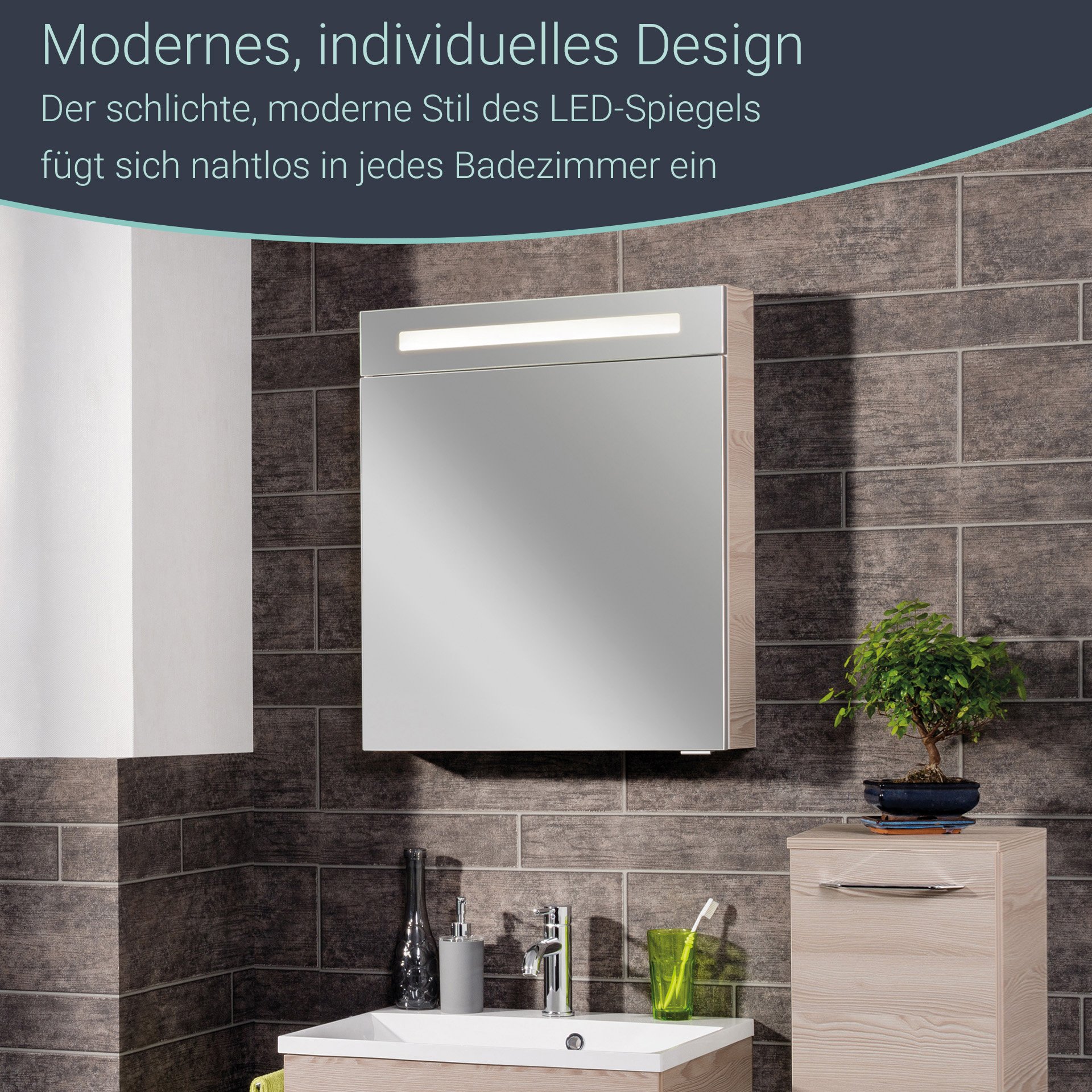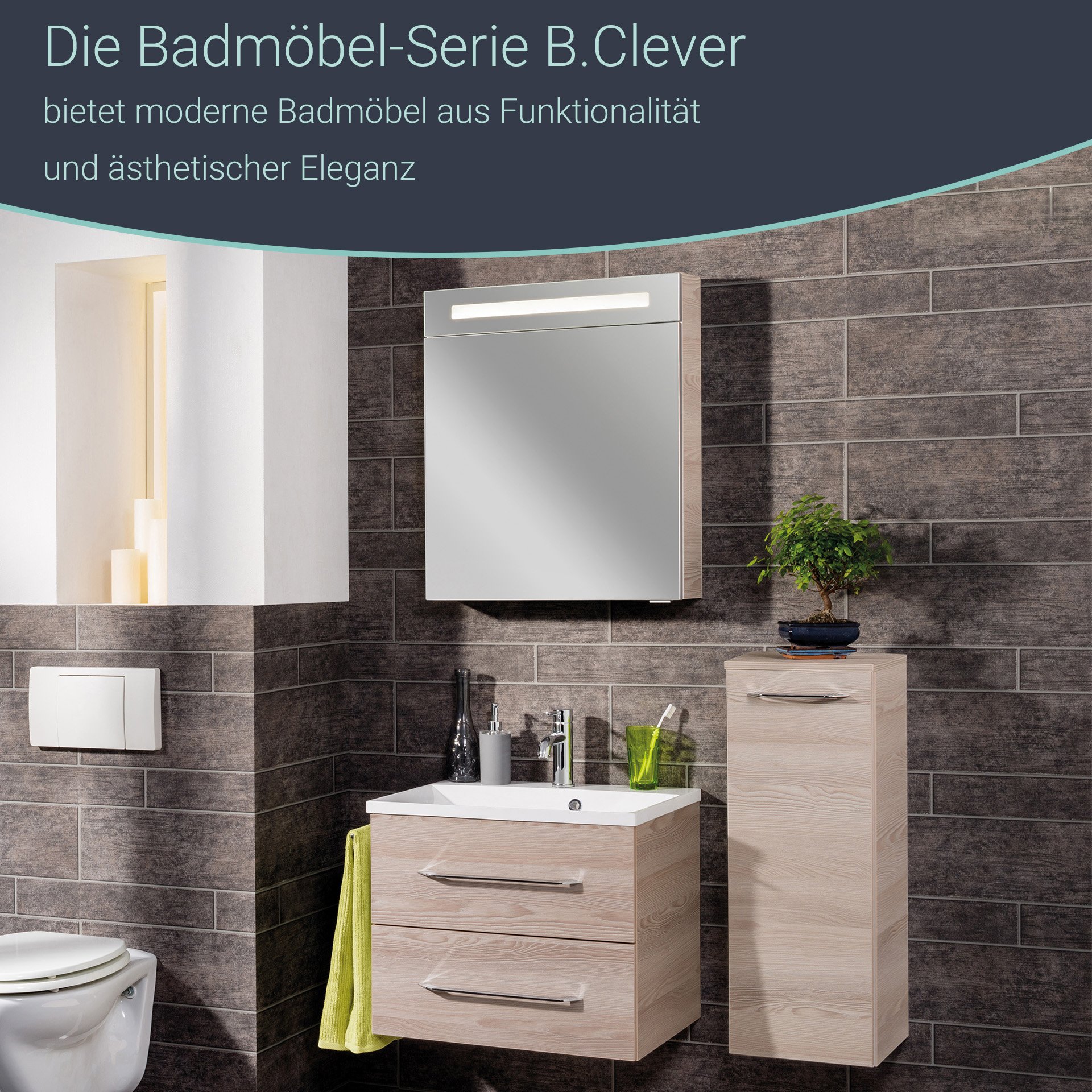 Der moderne LED-Spiegelschrank aus der Serie B.CLEVER von Fackelmann ist mit energiesparender Beleuchtung ausgestattet. Diese besteht aus 60 LEDs mit 4,8 Watt. Das Leuchtmittel ist austauschbar. Der Korpus ist in einem hellen Braun/Design Alaska Esche gehalten. Mit seinen zwei Glaseinlegeböden bietet er eine durchdachte Unterteilung des Innenraums und ausreichend Stauraum für Kosmetikartikel. Er hat eine Spiegeltür mit gedämpften Scharnieren. Diese gestatten ein sanftes Schließen. Eine Kante in Alu-Optik, die als Einfassung des Spiegels dient, unterstreicht die Wertigkeit des LED Spiegelschranks von Fackelmann. Im Spiegelschrank findest Du einen Schalter und eine Steckdose. Der Fackelmann B.CLEVER LED Spiegelschrank 60 cm, Braun hell wird mit viel Liebe zum Detail in Deutschland hergestellt. Eine clevere und leicht verständliche Aufbauanleitung hilft Dir beim Aufbau Deines zerlegten Badmöbels.