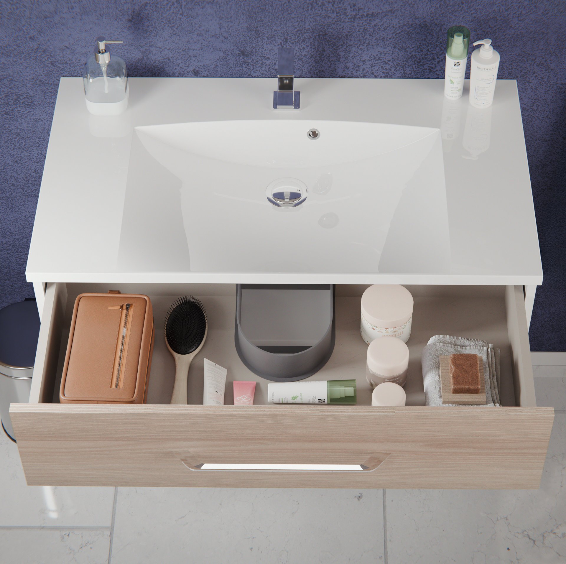 Das Fackelmann Badmöbel-Set bestehend aus Waschtisch und Waschtischunterschrank aus der Serie B.CLEVER ist die ideale Kombination für das moderne Bad. Der Korpus und die Front des Waschtischunterschranks sind in der Farbe Alaska Esche gehalten, was einem Farbton Braun hell entspricht. Dieses, dem skandinavischen Stil entsprechende moderne Badmöbelset ist mit zwei Schubladen ausgestattet, die genügend Stauraum für Badaccessoires bieten. Ein modernes Soft-Close-System macht das Öffnen und Schließen der Schubladen einfach und geräuscharm. Das Fackelmann B.CLEVER Waschtisch Set Gussmarmor 90 cm, Braun hell wird mit viel Liebe zum Detail in Deutschland hergestellt. Eine clevere und leicht verständliche Aufbauanleitung hilft Dir beim Aufbau Deines zerlegten Waschtischunterschranks.