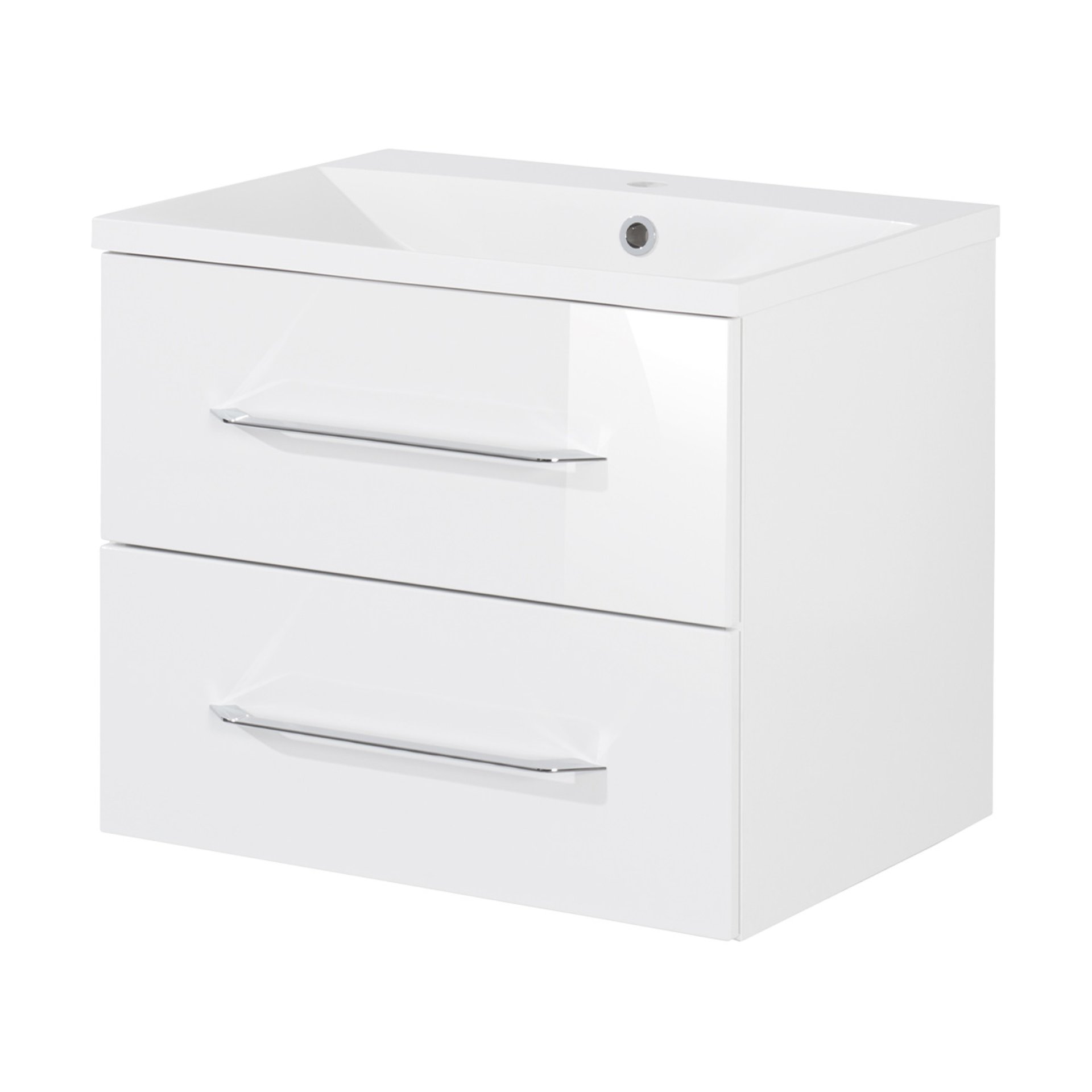 Fackelmann B.CLEVER Waschtisch Set mit Spiegelschrank 60 cm breit, Weiß, Waschbecken Gussmarmor Weiß