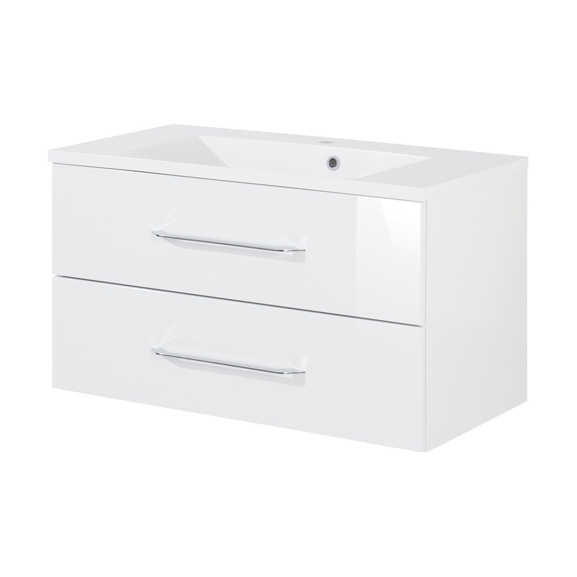 Fackelmann B.CLEVER Waschtisch Set mit Spiegelschrank 90 cm breit, Weiß, Waschbecken Gussmarmor Weiß