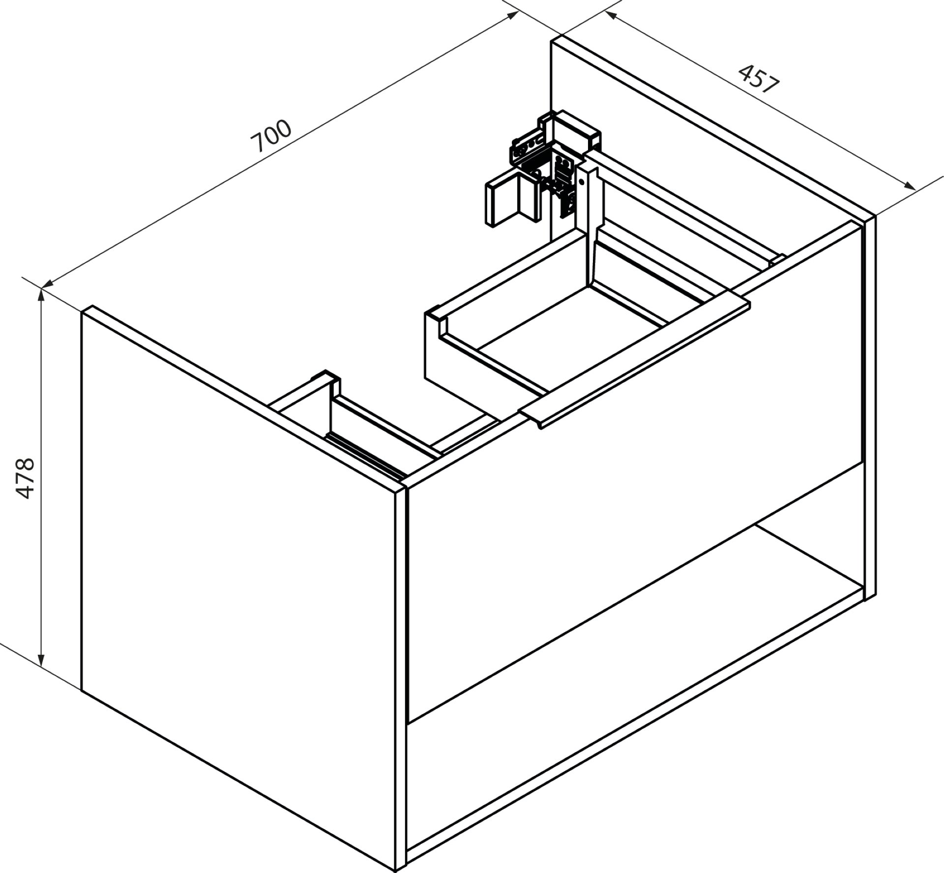- Maße: 70 cm Breite, 47,8 cm Höhe, 45,7 cm Tiefe