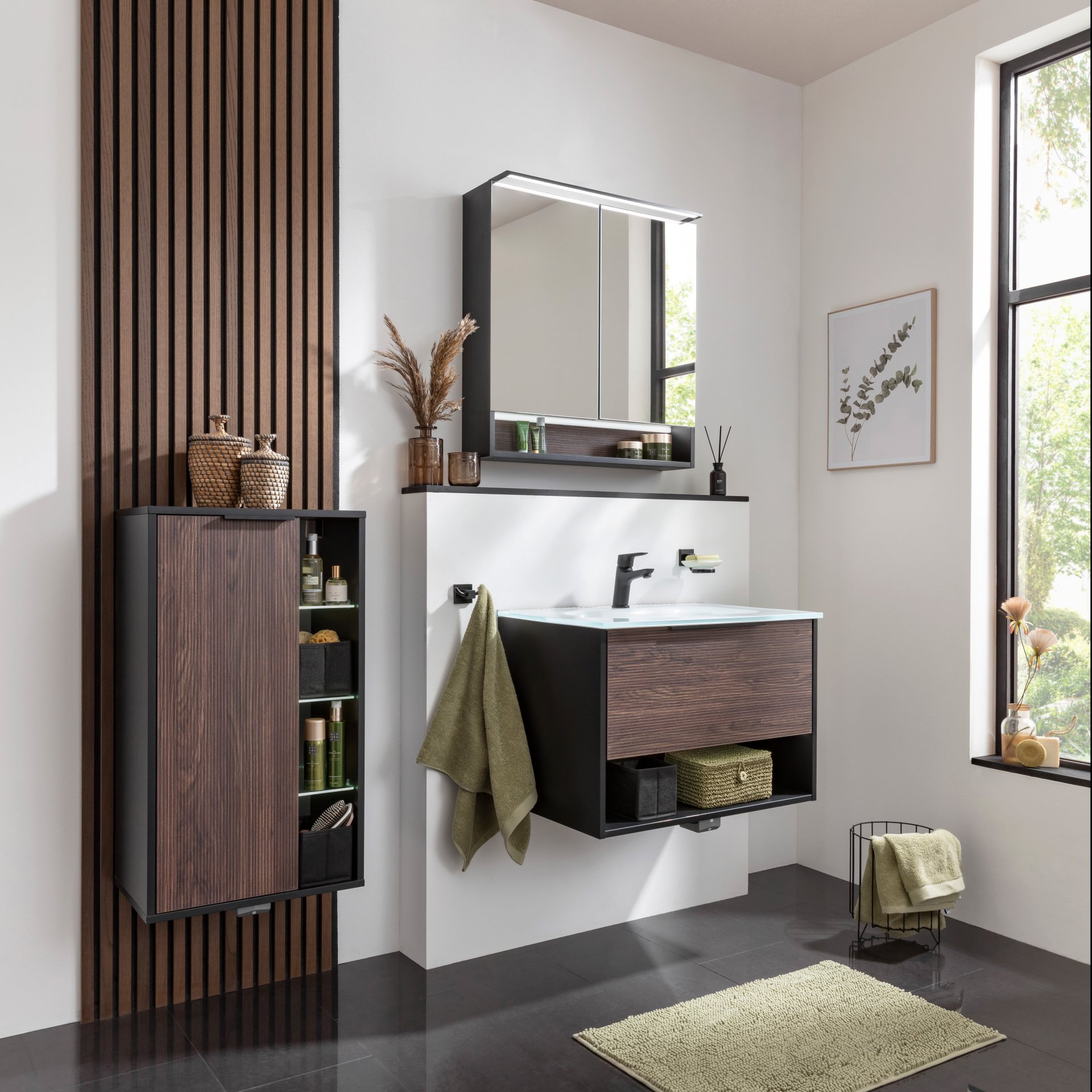 Fackelmann B.PARIS Badmöbel Set 2-teilig 70 cm breit, Braun dunkel/Schwarz, Glas weiß