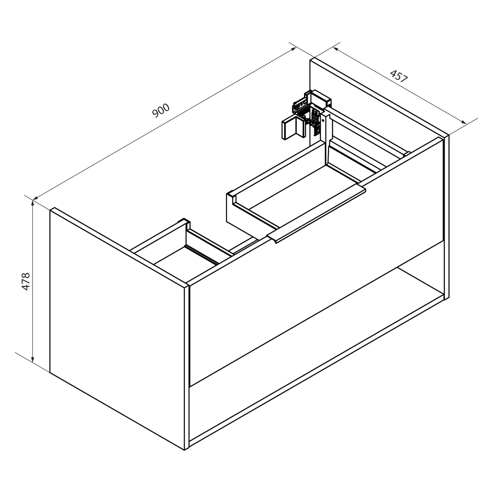 - Maße: 90 cm Breite, 47,8 cm Höhe, 45,7 cm Tiefe