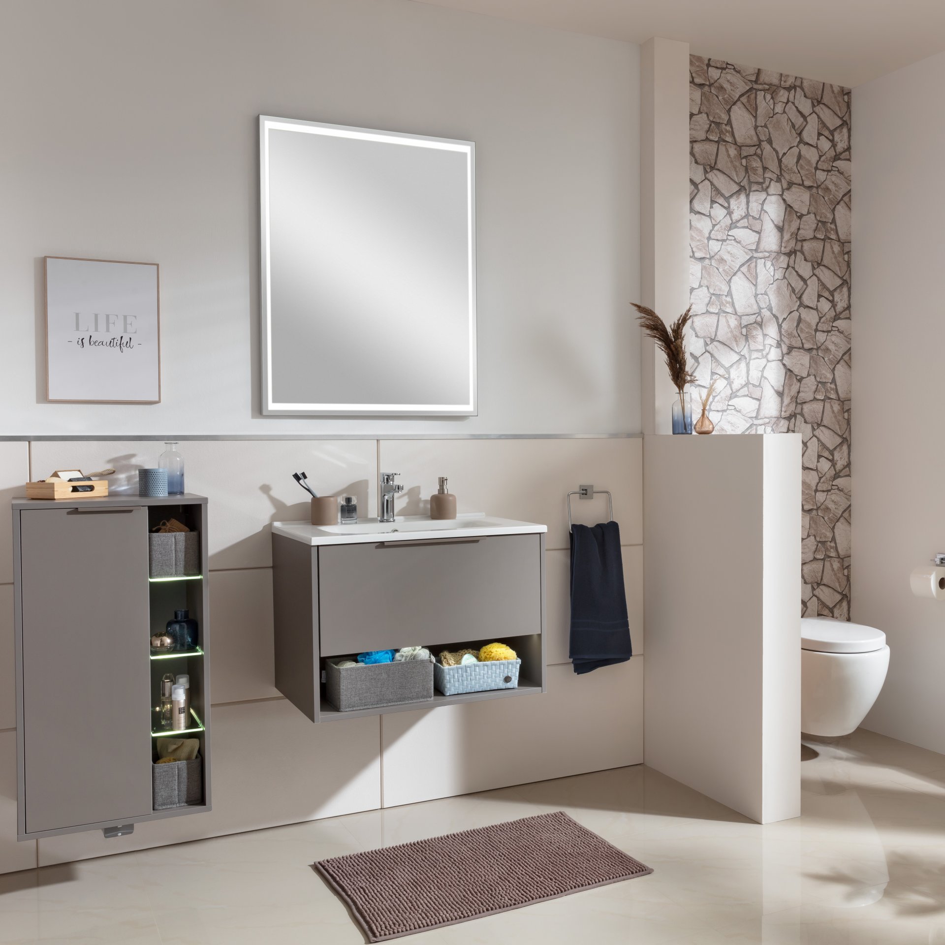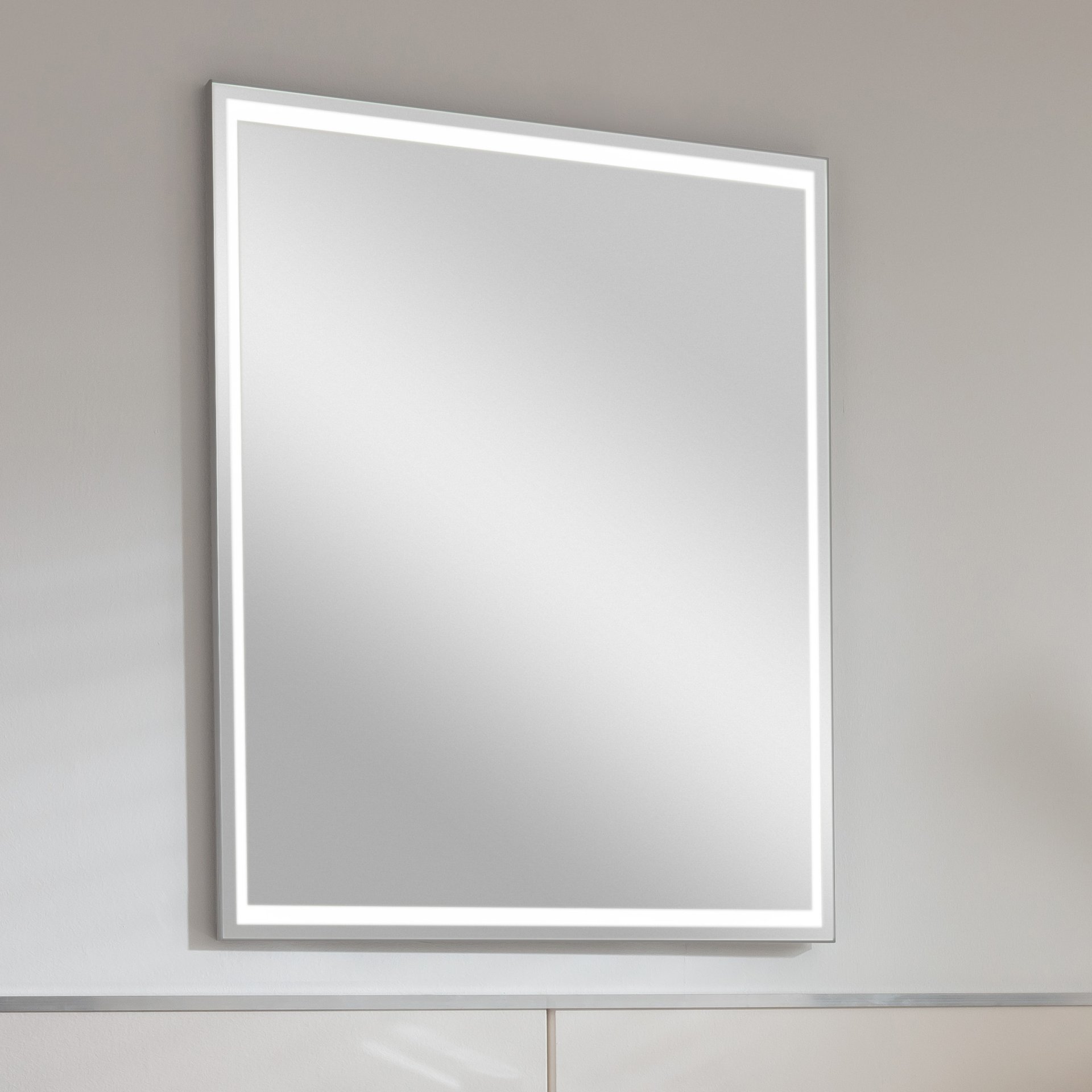 Du suchst einen zeitlosen aber stilvollen Spiegel für Dein modernes Badezimmer? Dann ist das LED-Spiegelelement mit seinem silberfarbenen Rahmen aus der Serie B.PARIS von Fackelmann genau die richtige Wahl. Dieses Spiegelelement überzeugt durch seine umlaufende, leistungsstarke LED-Beleuchtung von 16,3 Watt. Sie sorgt für eine gleichmäßige und helle Ausleuchtung der Spiegelfläche. Dank der austauschbaren LED-Technik kannst Du die Lichtquelle bei Bedarf einfach ersetzen. So schaffst Du Dir eine langlebige Lösung von höchster Qualität. Und das Beste: Du kannst den Spiegel sowohl senkrecht als auch waagerecht nutzen. Gib Deiner Kreativität Inspiration und schaffe Dir Flexibilität. Lass Dich von dem modernen Design verzaubern und verleihe Deinem Badambiente einen ganz besonderen Charakter. Der Fackelmann B.PARIS LED Spiegel 70 cm, Silber wird anschlussfertig und mit dem benötigten Befestigungsmaterial geliefert. So ist die Montage kinderleicht.