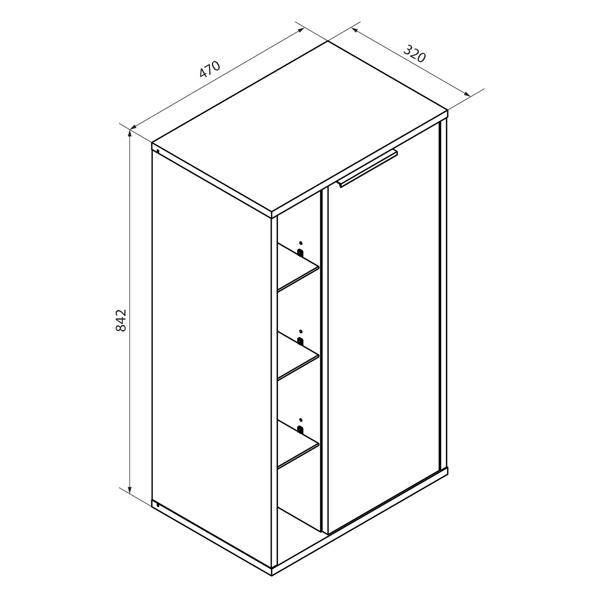 - Maße: 47 cm Breite, 84,2 cm Höhe und 32 cm Tiefe