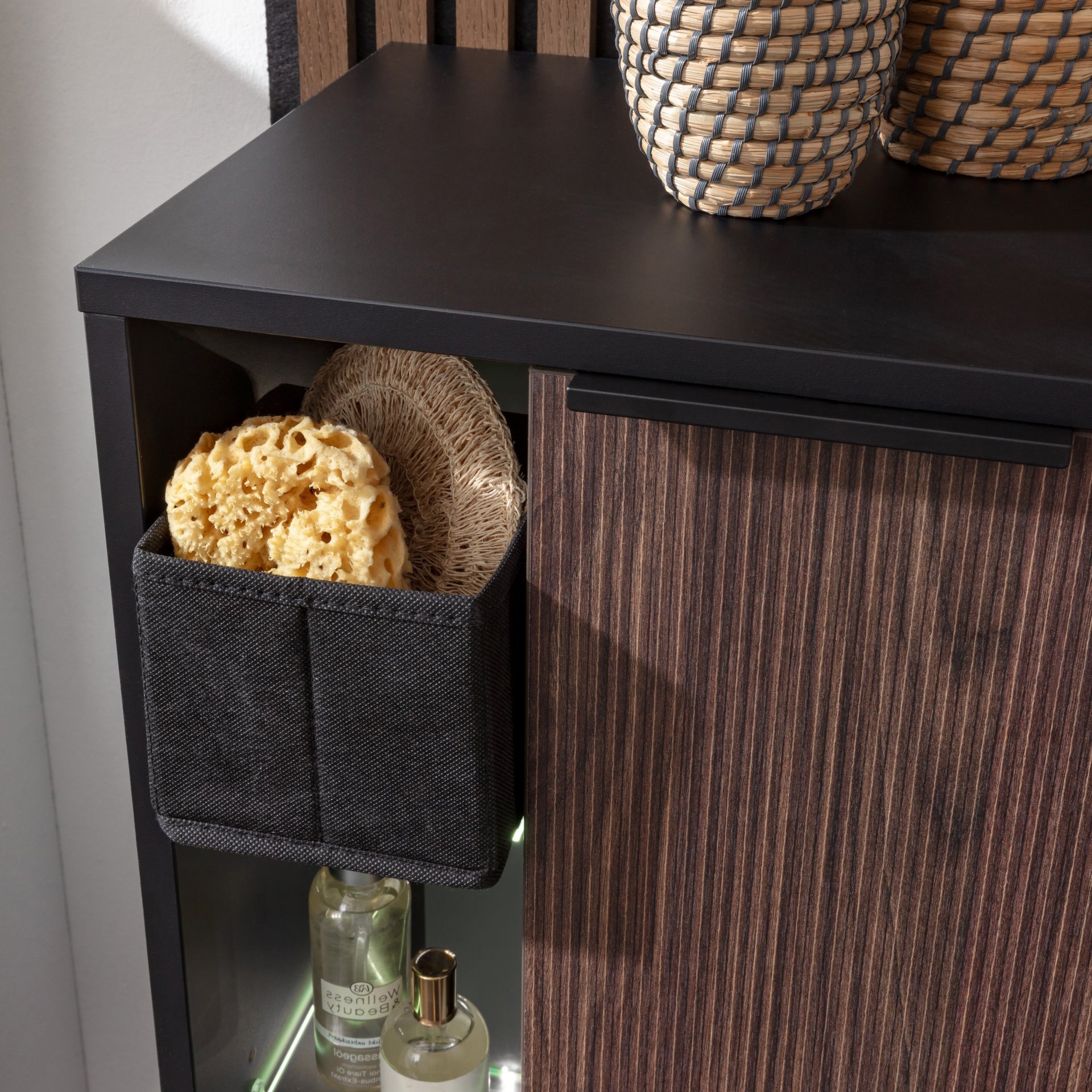 Fackelmann B.PARIS Midischrank 47 cm breit, Braun dunkel/Schwarz, Anschlag rechts
