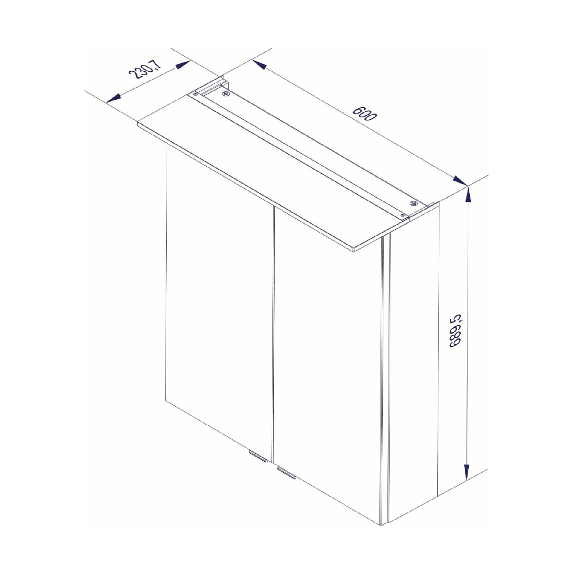 - Besonderheit: Farbtemperatur Neutralweiß, gedämpfte Scharniere, Spiegel mit 3D-Effekt