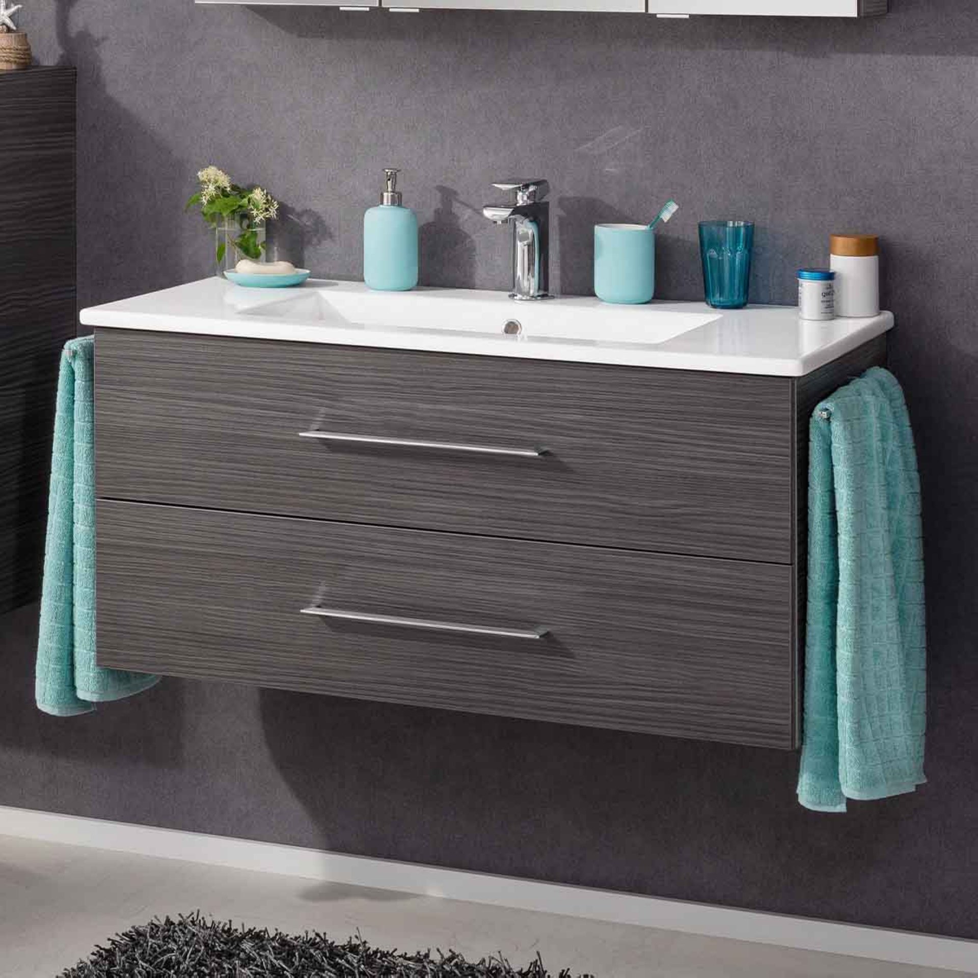 Fackelmann B.PERFEKT Waschbecken mit Unterschrank 103 cm breit, Anthrazit, Waschbecken Keramik Weiß