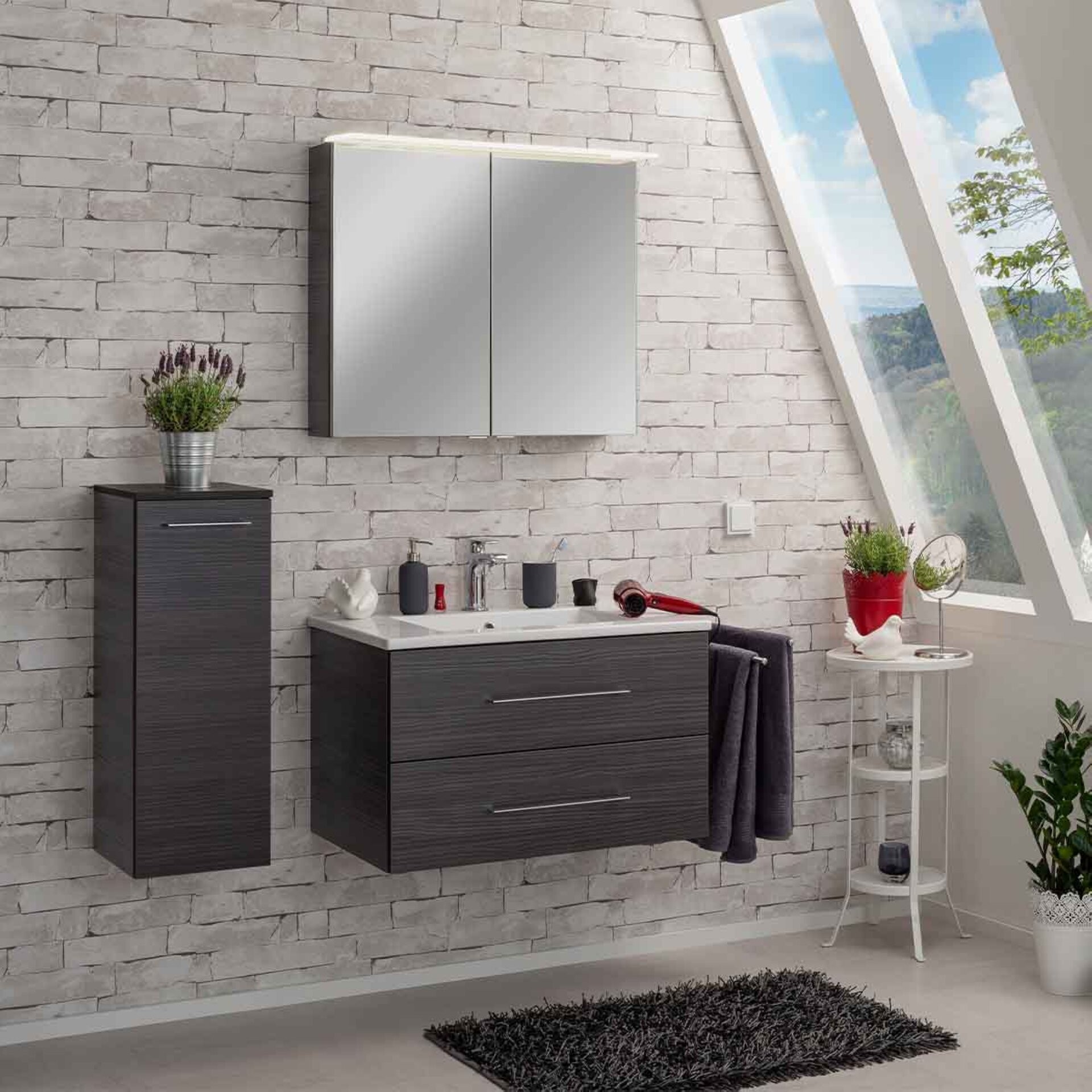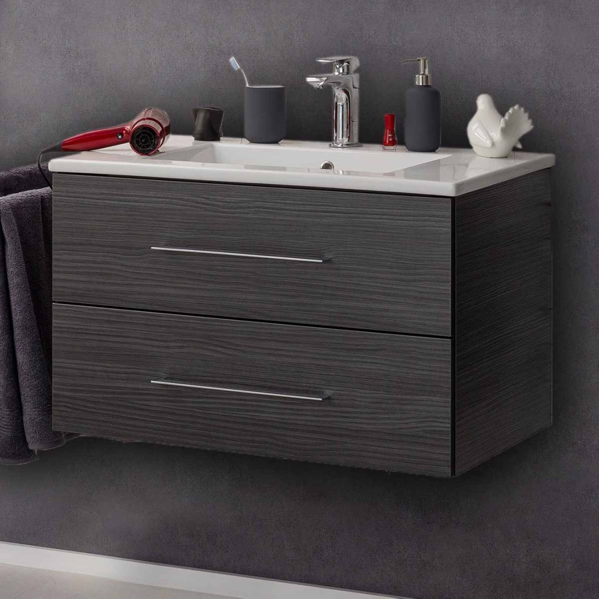 Fackelmann B.PERFEKT Waschbecken mit Unterschrank 82 cm breit, Anthrazit, Waschbecken Keramik Weiß
