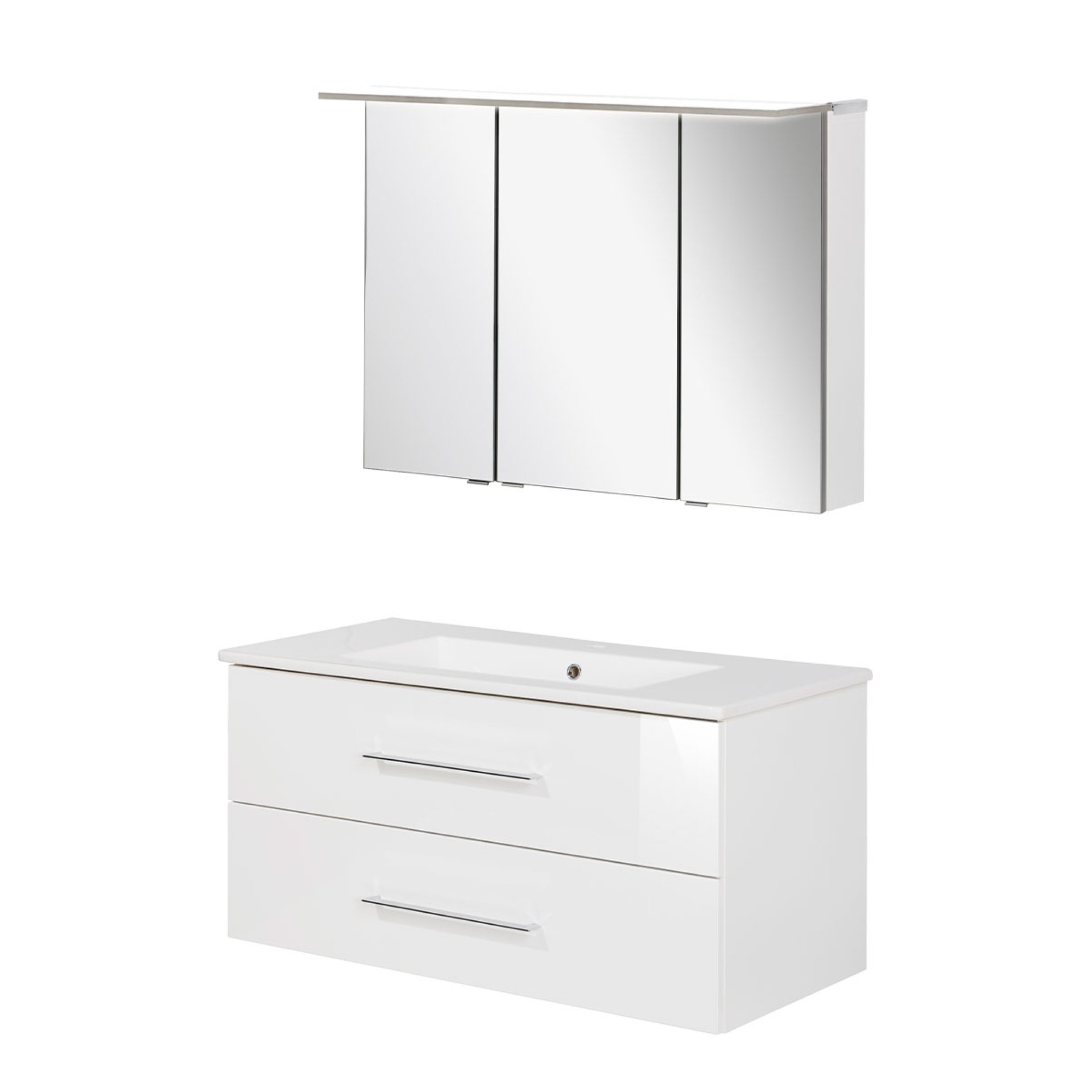 Fackelmann B.PERFEKT Waschtisch Set mit Spiegelschrank 103 cm breit, Weiß, Waschbecken Keramik Weiß