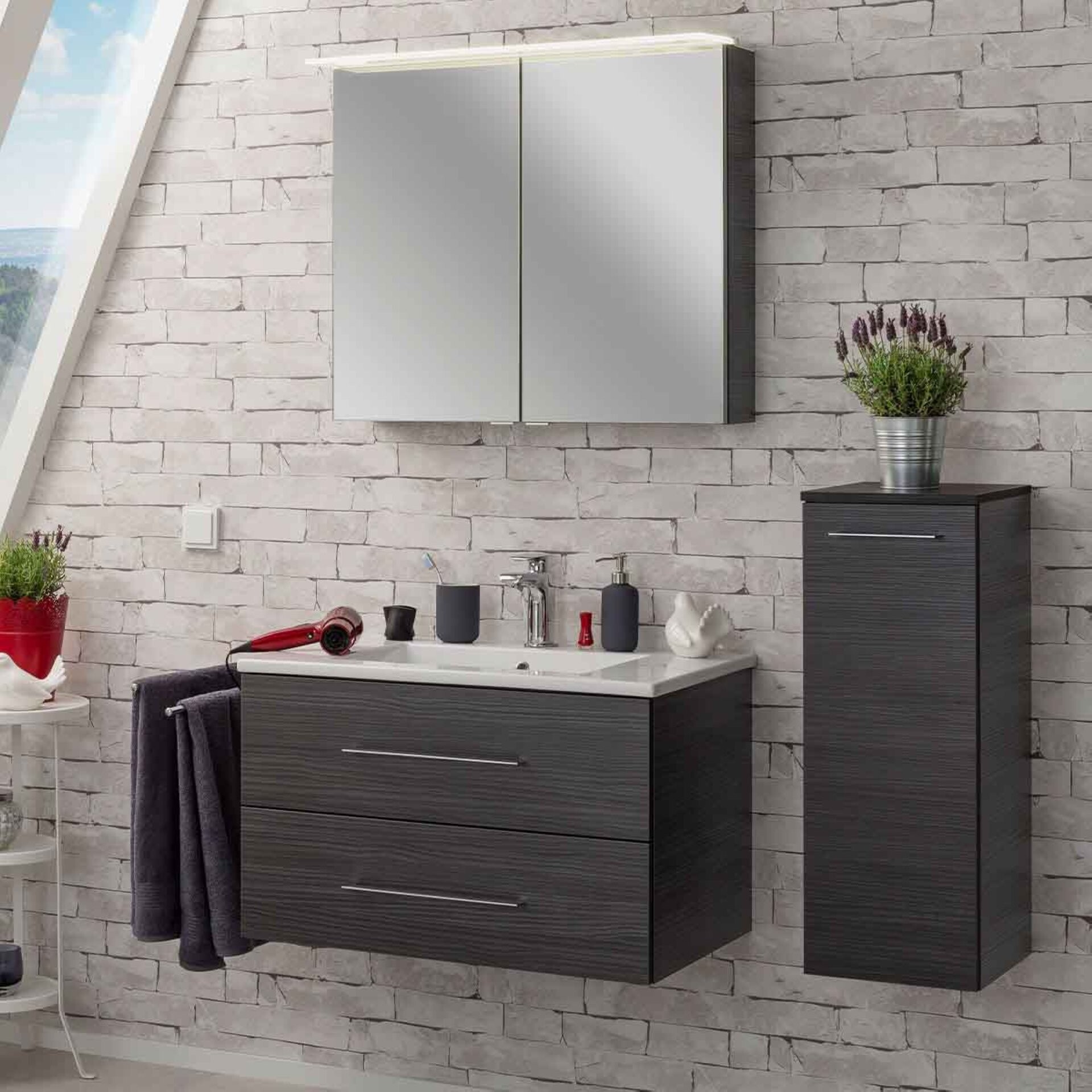 Fackelmann B.PERFEKT Waschtisch Set mit Spiegelschrank 82 cm breit, Anthrazit, Waschbecken Keramik Weiß