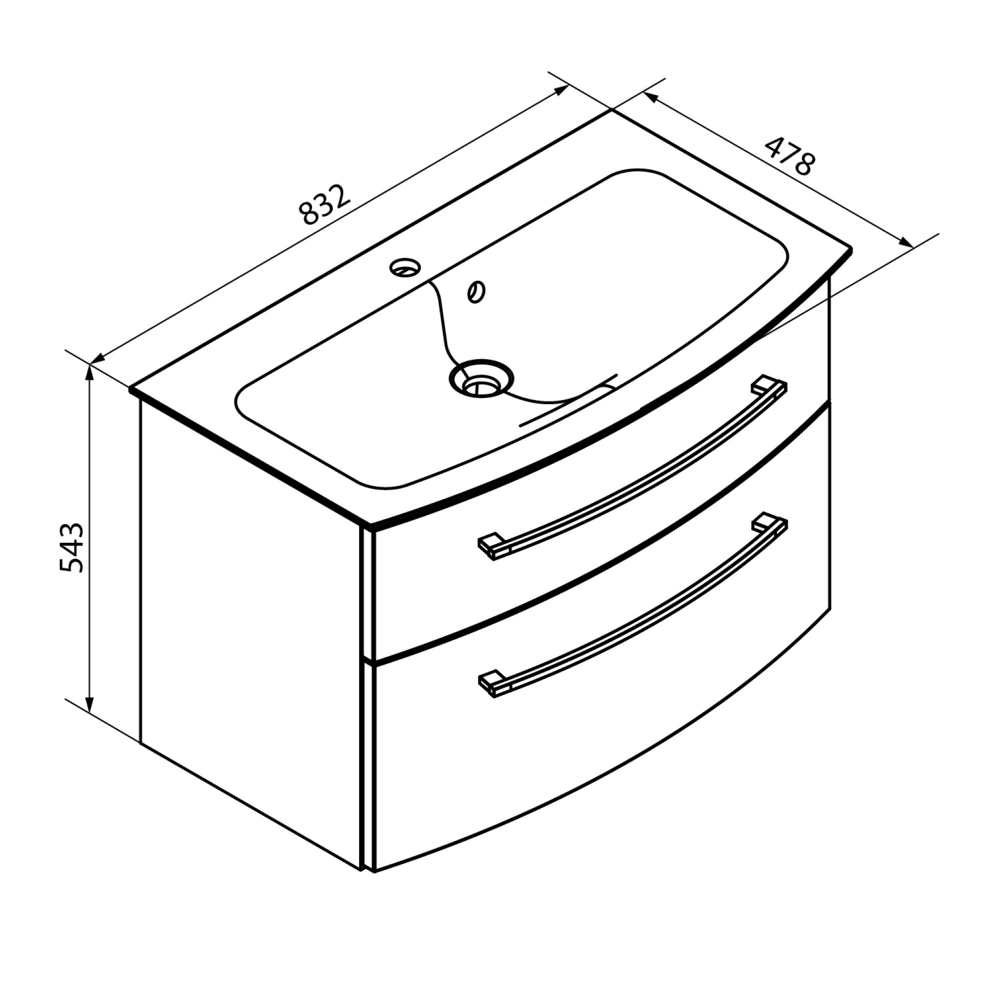 - Ausstattung: 2 Schubladen, 2 Griffe chromglänzend, Soft-Close-System