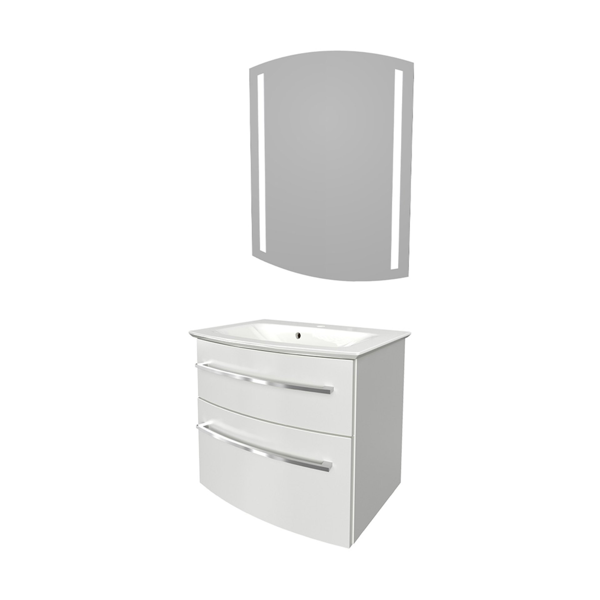 Klassisches Weiß hat nie seine Aktualität im Bad verloren. Es steht für Reinheit und Klarheit. Das moderne 60 cm breite Badmöbel Set aus der Serie B-STYLE von Fackelmann ist ein zeitloser und effektvoller Blickfang und ein perfekter Waschplatz in Deinem neuen Badezimmer. Die leicht geschwungene Front des Waschtischunterschranks mit seinen zwei Schubladen und den beiden chromglänzenden Griffen verleiht dem Möbel Leichtigkeit. Enorm viel Stauraum bieten die beiden Schubladen mit Soft-Close-System. All die kleinen Dinge für das tägliche Pflegeritual sind im integrierten Ordnungssystem perfekt aufgeräumt und immer griffbereit. Das Set mit einer Breite von 60 cm eignet sich hervorragend für kleine Bäder und Gäste WC'sund bietet ausreichend Platz für viele Badaccessoires. Der robuste Waschtisch aus Gussmarmor nimmt die Form des Waschtischunterschranks auf und bildet eine perfekte Harmonie. Gekrönt wird das Waschtischset durch den modernen LED-Spiegel. Dein neues Designobjekt für Dein Badezimmer! Mit Ambientebeleuchtung im unteren Teil des Spiegels und zwei senkrechten, in den Spiegel integrierten, Leuchtsäulen. Mit viel Liebe zum Detail werden Badmöbel von Fackelmann für Dich in Deutschland hergestellt. Das Fackelmann B.STYLE Badmöbel Set 3-teilig, 63 cm, Weiß + LED-Spiegel eignet sich hervorragend für Gäste WC's oder kleine Bäder und bietet ausreichend Platz für Deine Badaccessoires. Damit das dreiteilige Badset ganz leicht in Deinem neuen Badezimmer integriert werden kann ist es vormontiert.