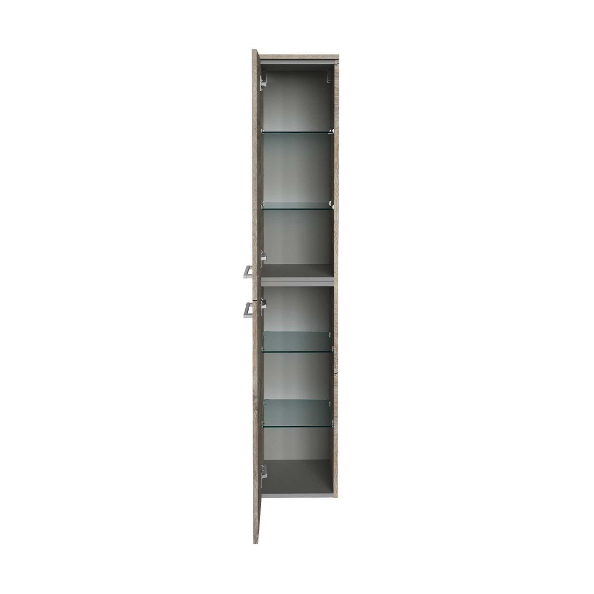 - Ausstattung: 2 Türen, Türanschlag links, 4 Glaseinlegeböden, 2 Griffe chromglänzend, gedämpfte Scharniere