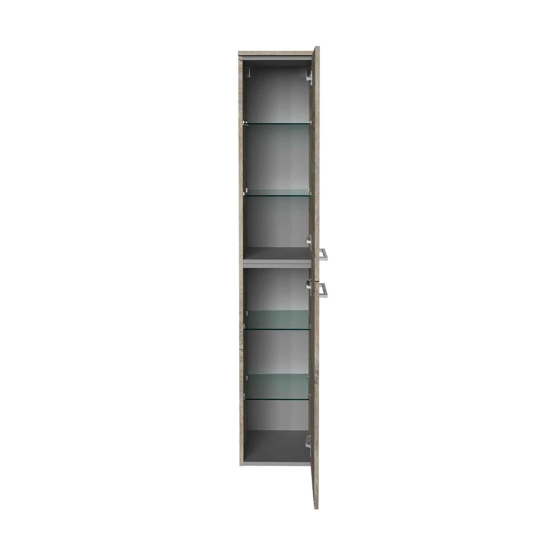 - Ausstattung: 2 Türen, Türanschlag rechts, 4 Glaseinlegeböden, 2 Griffe chromglänzend, gedämpfte Scharniere