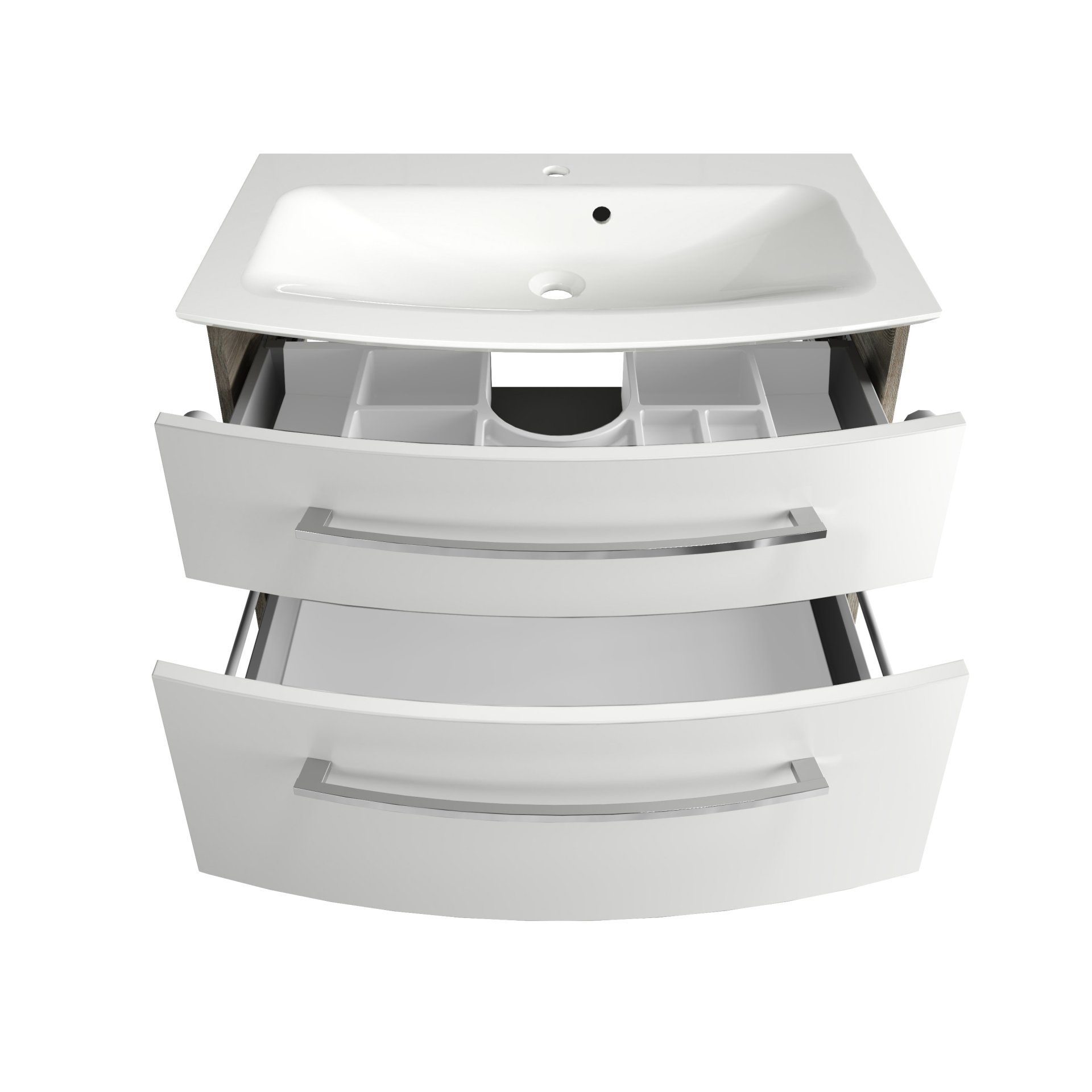 - Besonderheit: Ordnungssystem im oberen Schub integriert, Schublade innen und Querteile silbergrau