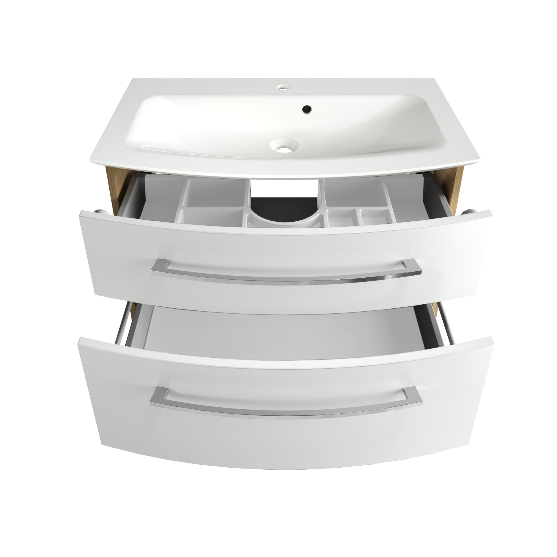 - Ausstattung: 2 Schubladen, 2 Griffe chromglänzend, Soft-Close-System
