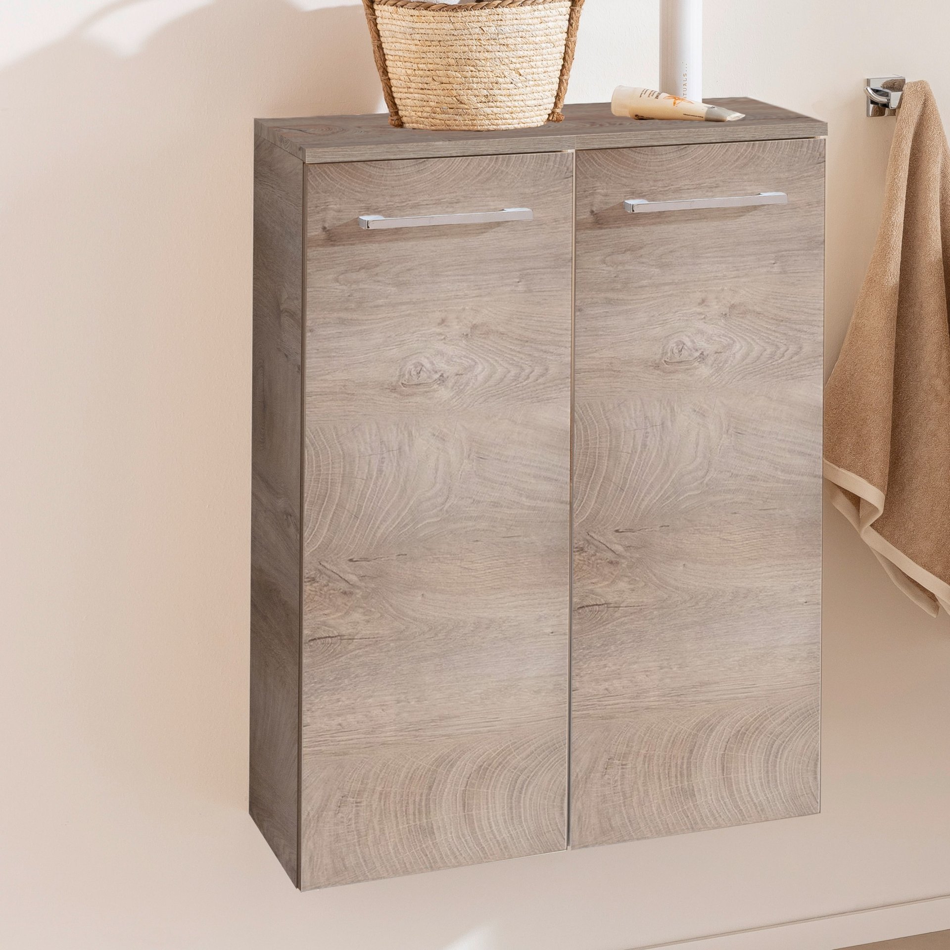 Fackelmann B.STYLE Doppel Midischrank 60 cm, Braun mit Wäschekorb