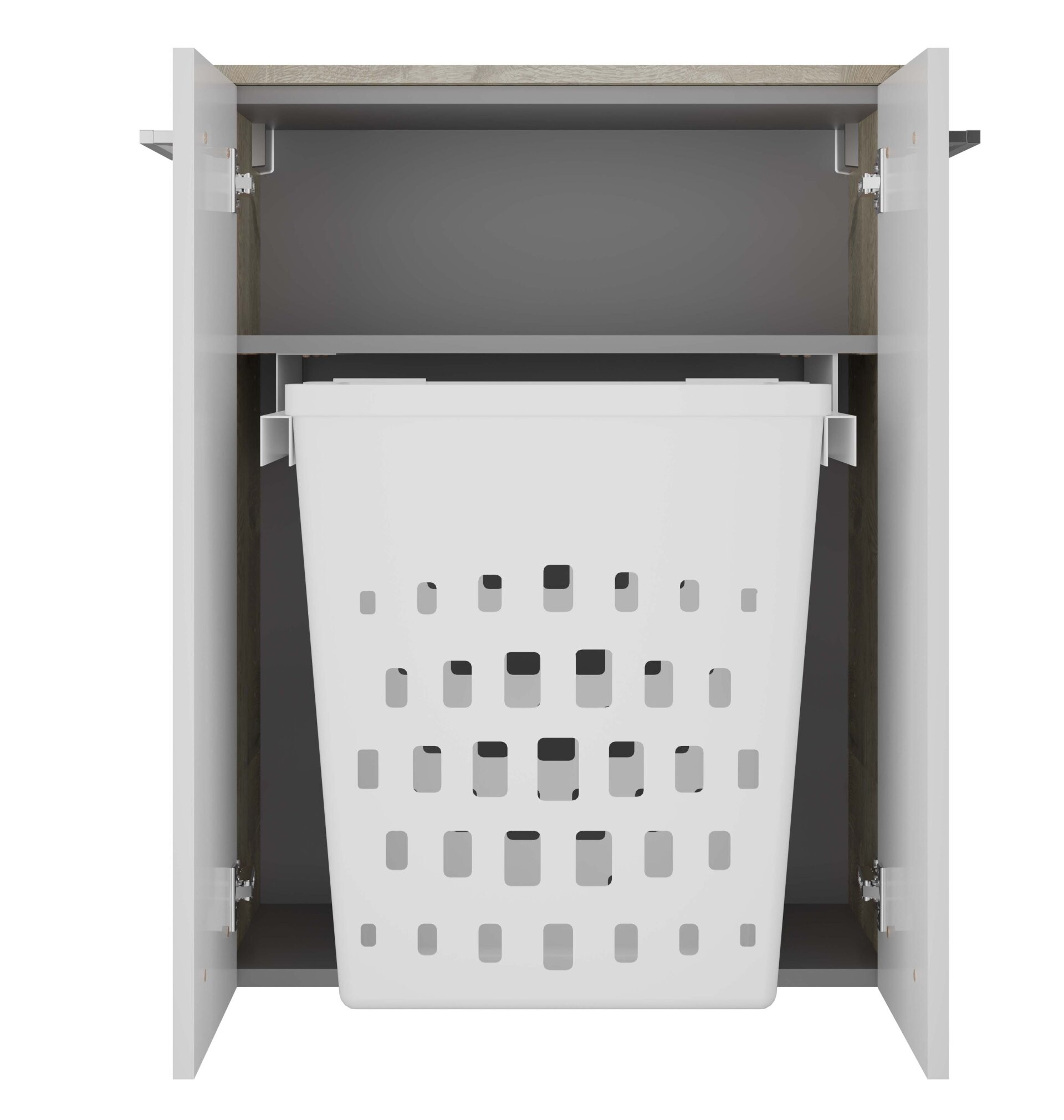- Besonderheit: Auszug mit Wäschekorb, Abdeckplatte in Korpusfarbe, gedämpfte Scharniere