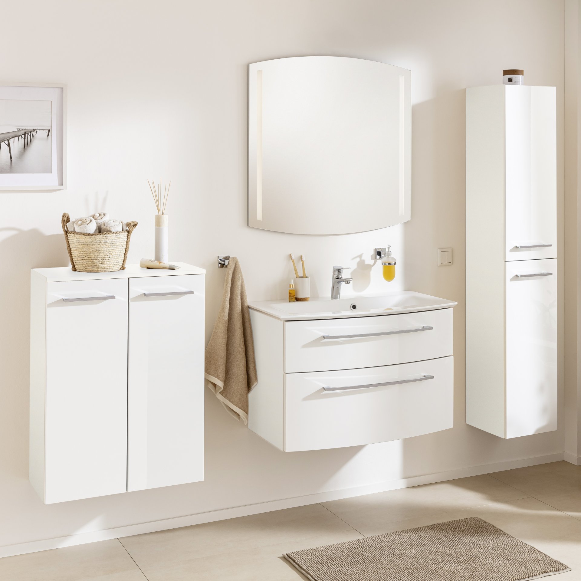 Du suchst einen Badschrank der in Farbe und Design zeitlos ist und gleichzeitig mit durchdachter Funktionalität punktet? Dann triffst Du mit dem 60 cm breiten Doppel-Midischrank aus der Serie B.STYLE von Fackelmann genau die richtige Wahl. Die Farbe Weiß ist zeitlos und zeichnet sich durch Klarheit sowie Leichtigkeit aus. Bäder wirken dadurch optisch heller und freundlicher. Hinter zwei Türen mit moderner Soft-Close-Funktion verbirgt sich ein praktischer Stauraum mit einem Einlegeboden. Besonders clever ist der integrierte Wäschekorb mit Auszug. Schmutzige Wäsche ist schnell, diskret verstaut. Verchromte Griffe setzen dezente Akzente und unterstreichen den hochwertigen Look des vormontierten Badschranks. Somit ist der FACKELMANN B.STYLE Doppel Midischrank 60 cm, Weiß mit Wäschekorb sofort einsatzbereit und im Handumdrehen installiert. Badmöbel von Fackelmann werden mit großer Sorgfalt in Deutschland gefertigt und zeichnen sich durch ihre geschätzte Qualität aus.