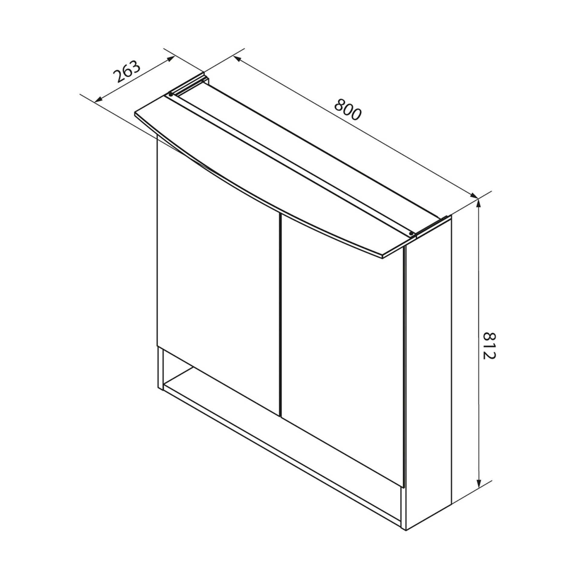 - Besonderheit: Zum perfekten Öffnen der Spiegeltüren muss der seitliche Abstand zu Wand oder Schrank mindestens 80 mm betragen.