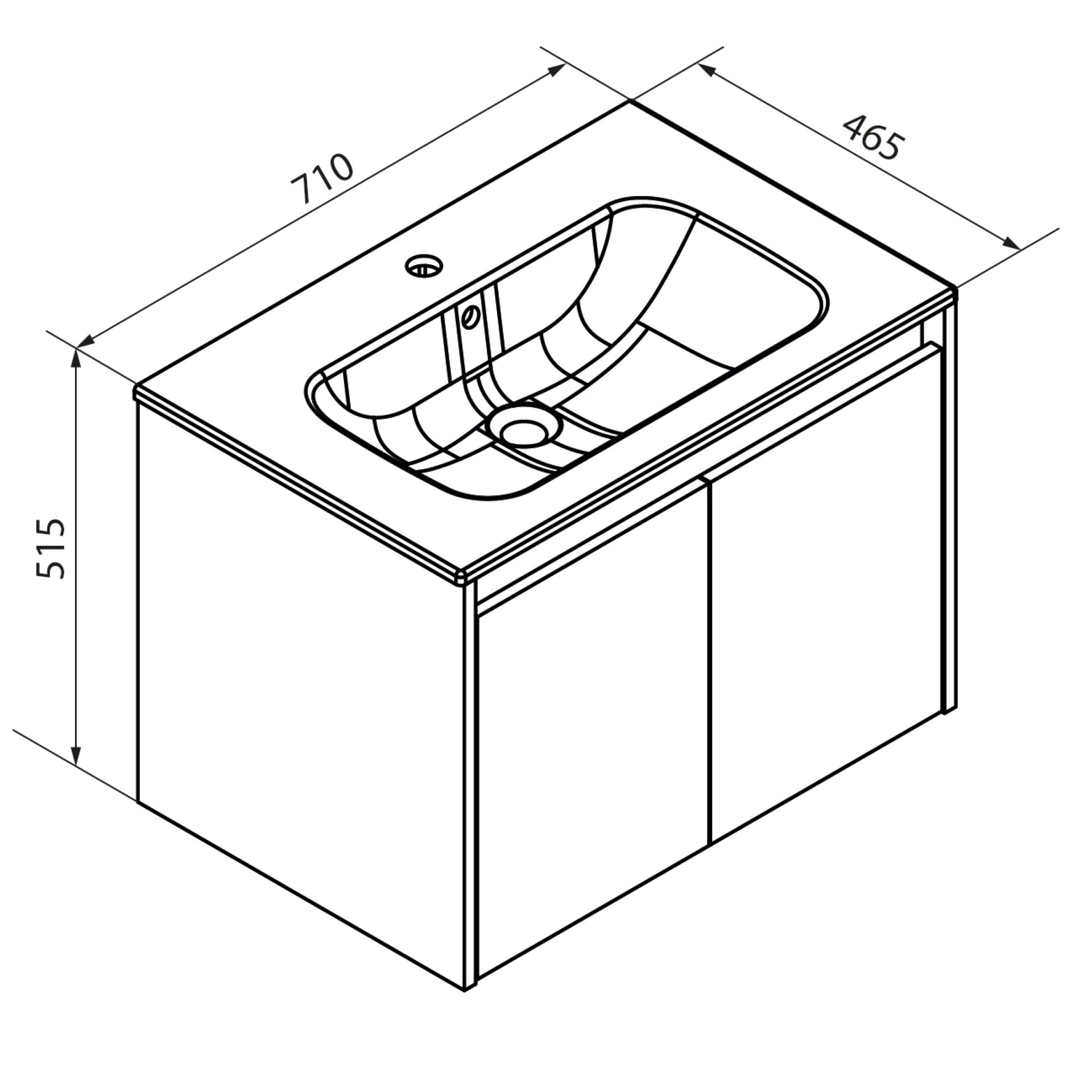 - Maße: 71 cm Breite, 17 cm Höhe und 46,5 cm Tiefe, Beckendicke 1,5 cm