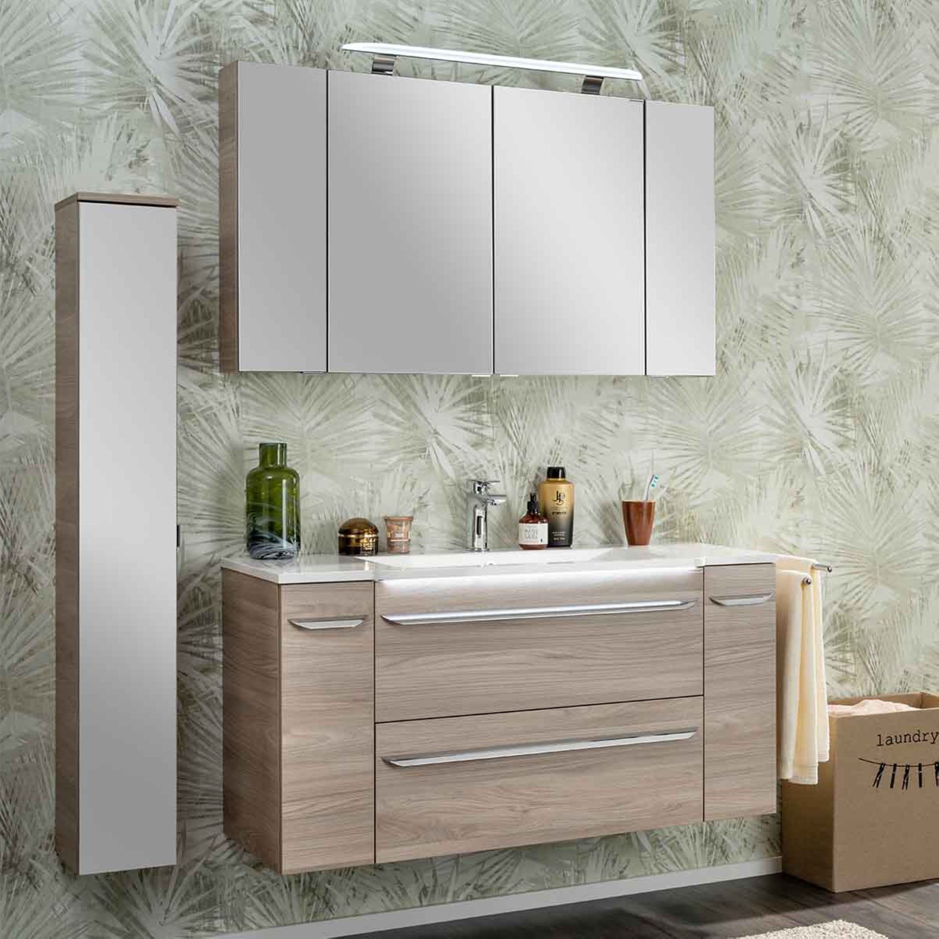 Die LED-Beleuchtung ConturaLight von Fackelmann sorgt für eine stilvolle Beleuchtung im Badezimmer. Das LED-Band wird einfach unter dem Waschbecken angebracht und verfügt über einen Bewegungsmelder mit Batterien. Sobald Du an den Waschtisch trittst, schaltet sich das Licht automatisch ein und beleuchtet auch die Schubladen des Waschtisch-Unterschranks. Beim Verlassen des Bades erlischt das Licht nach zirka 30 Sekunden automatisch. Besonders praktisch: Die LED-Beleuchtung ist austauschbar. Ein Stromanschluss ist nicht nötig, optional jedoch möglich. Die Fackelmann LED Beleuchtung ConturaLight für Waschbecken 90 cm passt unter anderem optimal zu dem Keramikbecken aus der Serie MILANO (Art.Nr. 84200) von Fackelmann oder allen anderen handelsüblichen Waschbecken mit der passenden Breite. Waschtische sind nicht im Lieferumfang enthalten und können separat bei BadeDu bestellt werden.