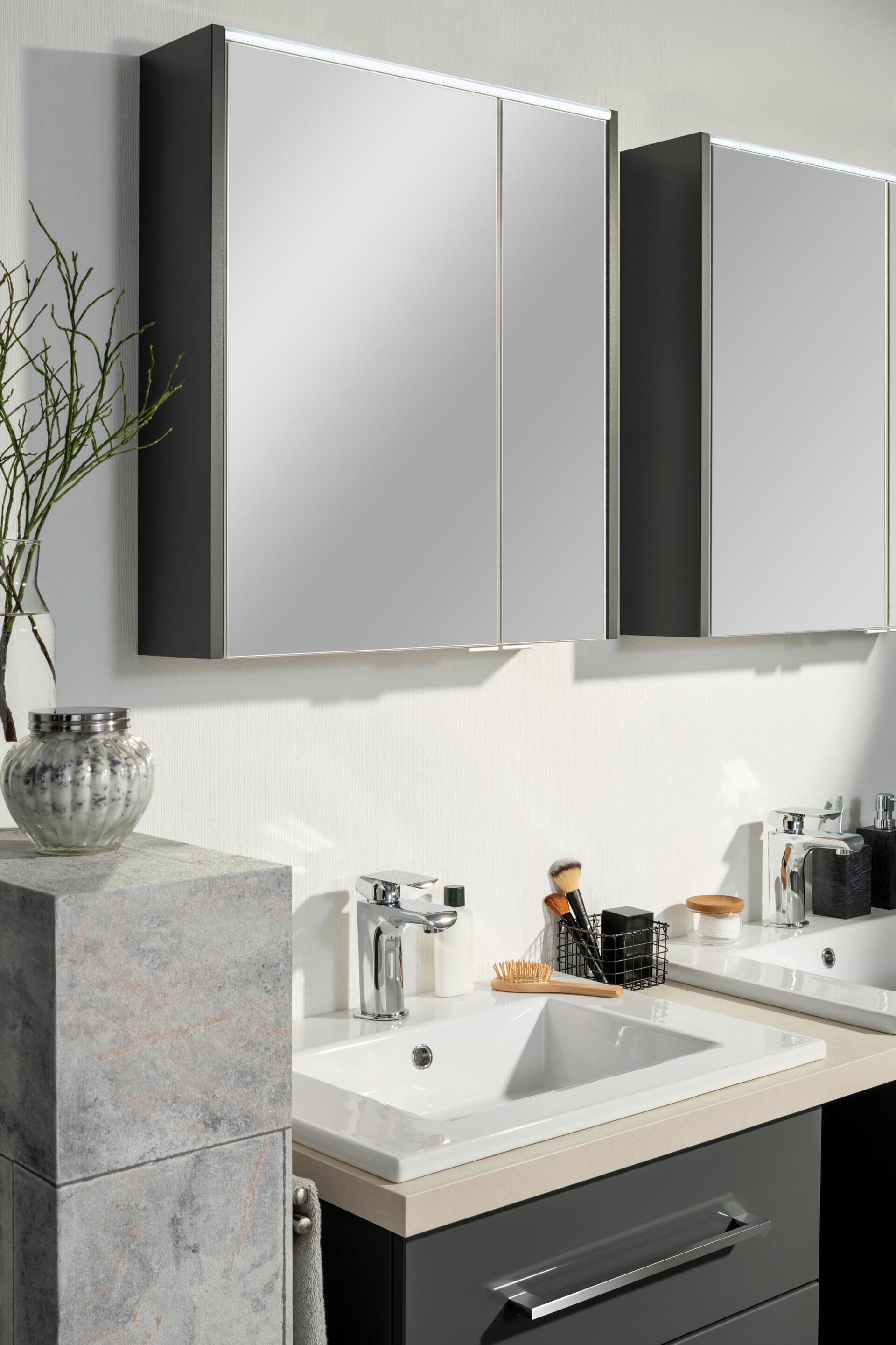 Fackelmann DENVER LED Spiegelschrank 60 cm breit, Schwarz (Anthrazit)