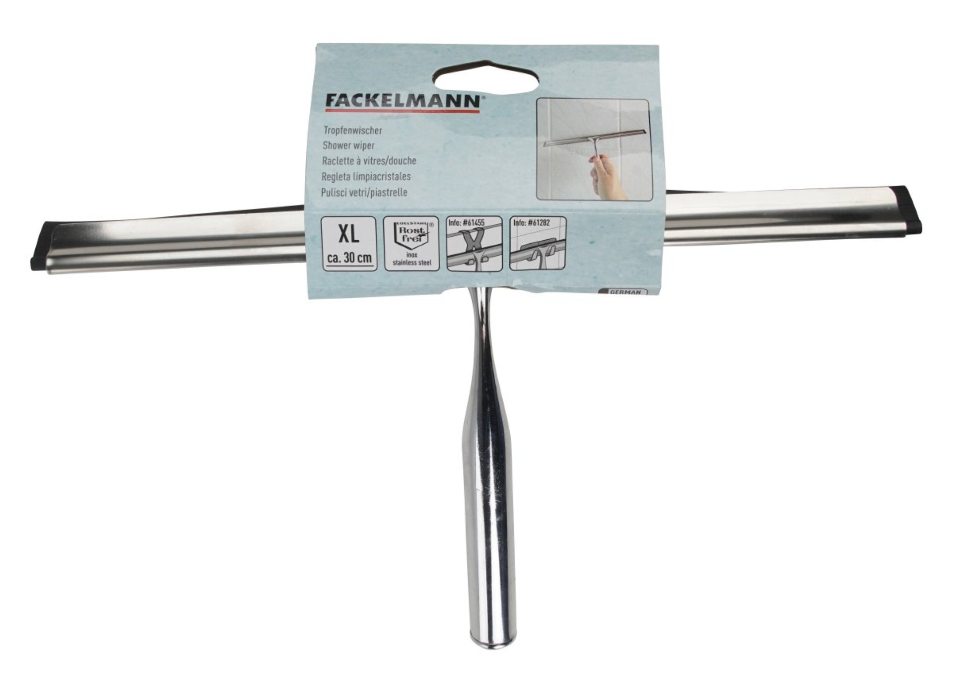 Der Fackelmann Duschabzieher aus Edelstahl mit einer Breite von 30 cm ist ein Produkt für Jedermann. Du hast nach der Dusche nasse Duschwände und willst Kalkablagerungen vermeiden? Deine Fenster sind schmutzig und Du willst sie reinigen? Oder Deine Autoscheibe ist verschmiert? Das sind nur wenige Beispiele für Probleme, die durch diesen fabelhaften Duschabzieher gelöst werden. Doch nicht nur im Bad findet der Duschabzieher sein Einsatzgebiet, sondern überall im Haus. Besonders für Putzarbeiten an glatten Stellen, wie Fenstern, ist er ein Muss. Auf Grund seines Materials, er ist aus Edelstahl, ist der Duschabzieher rostfrei und langlebig. Der Hersteller Fackelmann steht seit vielen Jahrzehnten für Qualität, Zuverlässigkeit und Innovation.