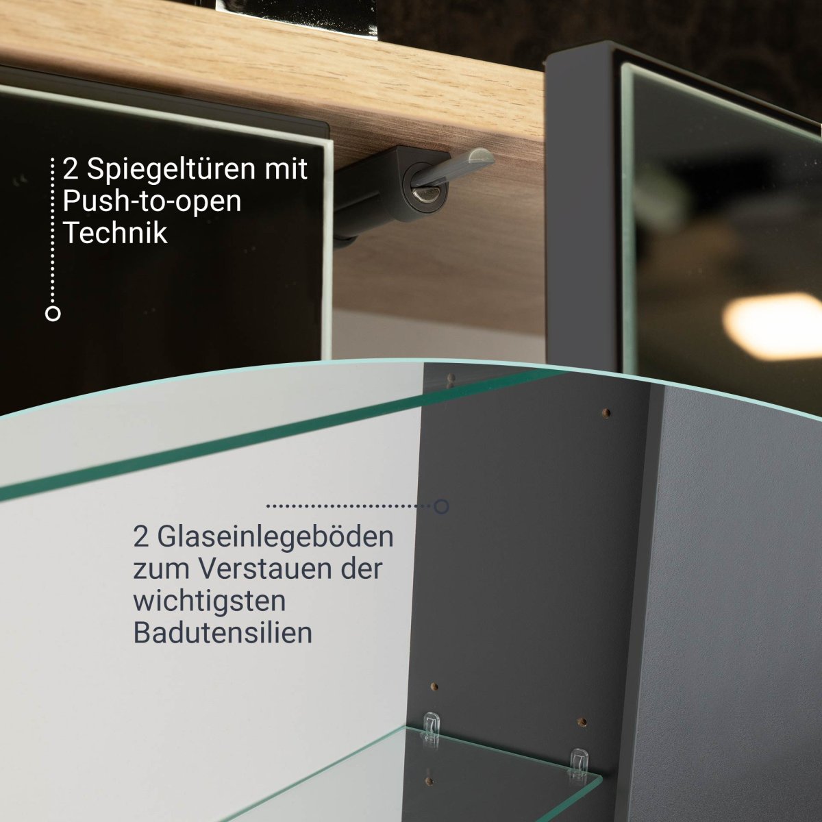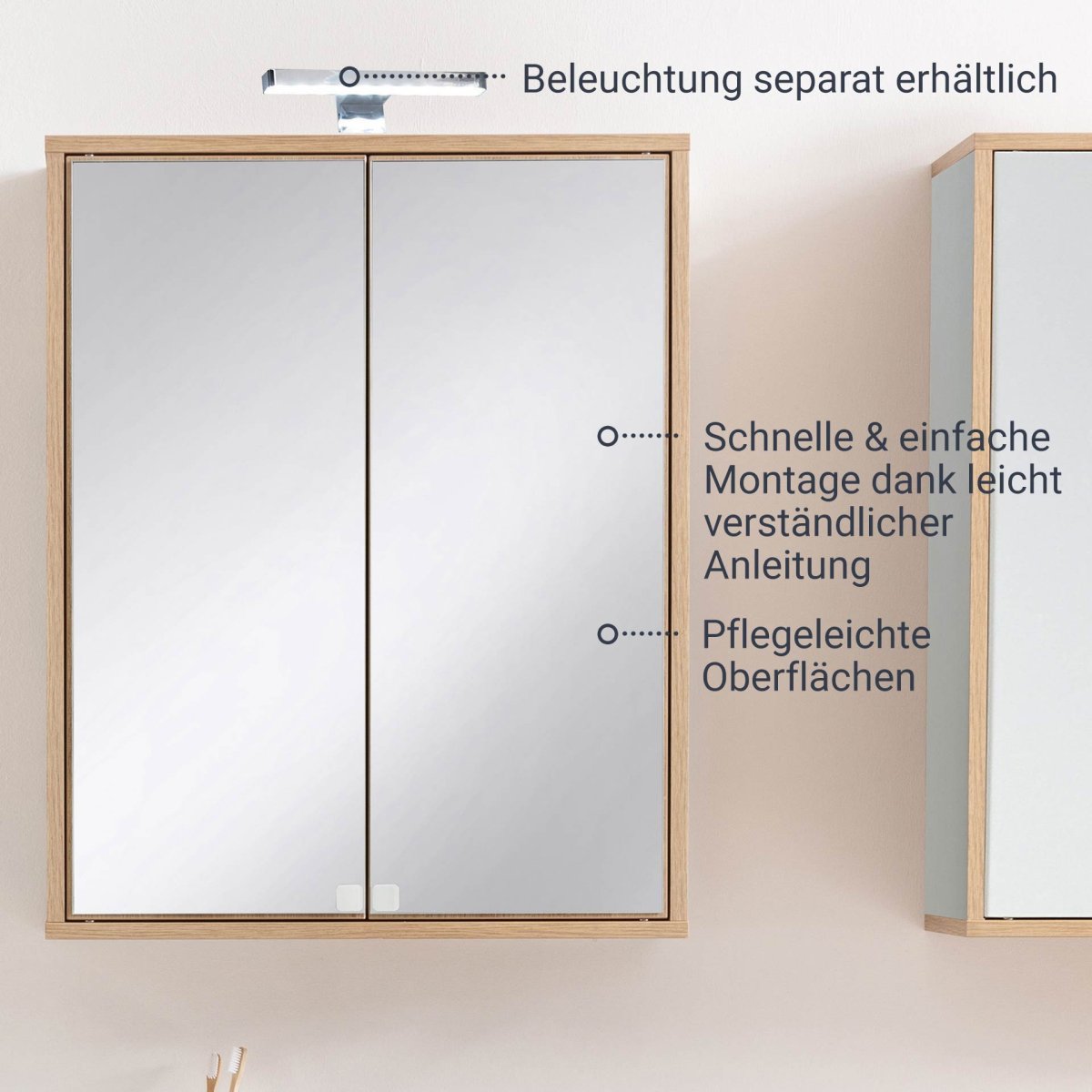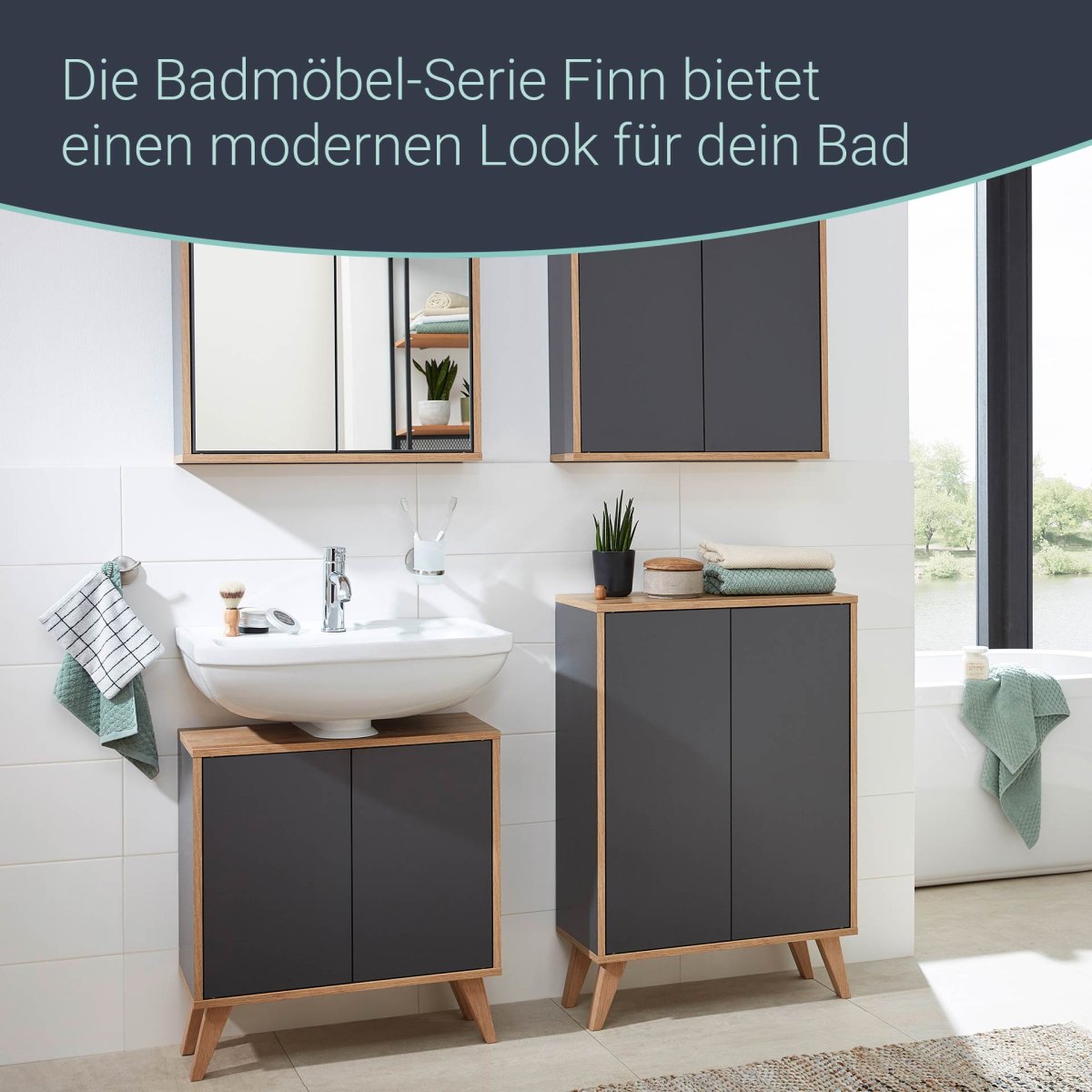 Fackelmann FINN Spiegelschrank 60 cm, Braun hell/Anthrazit