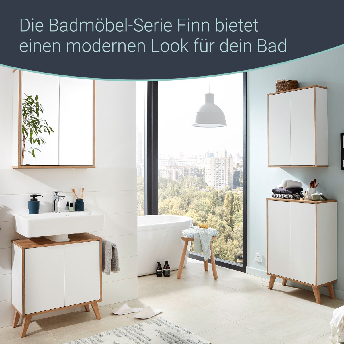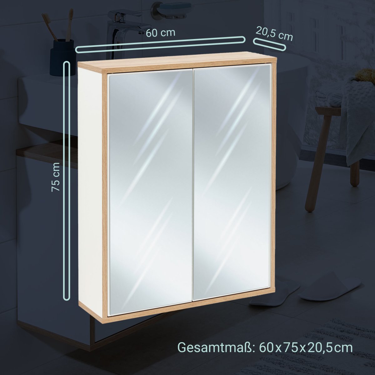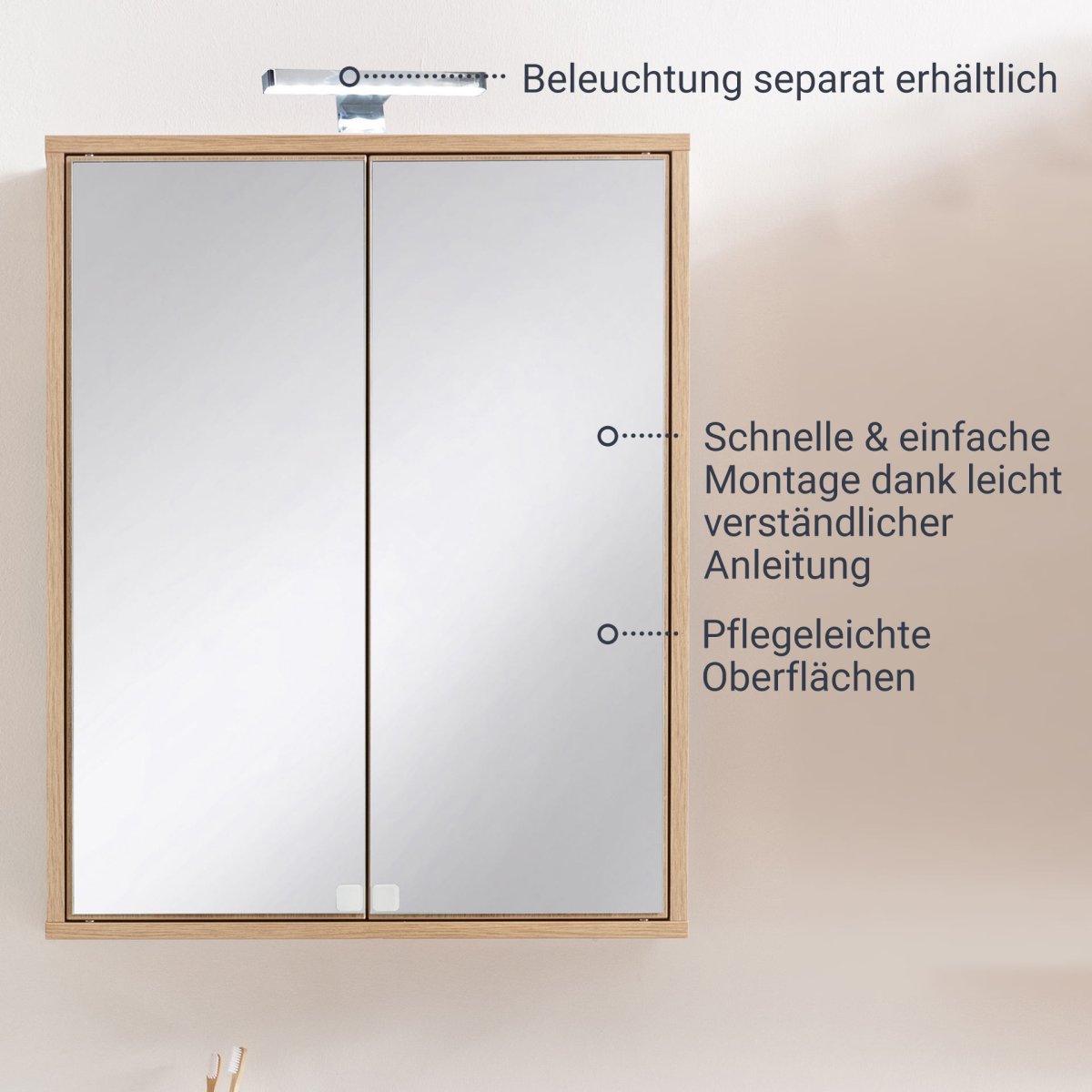 Fackelmann FINN Spiegelschrank 60 cm, Braun hell/Weiß