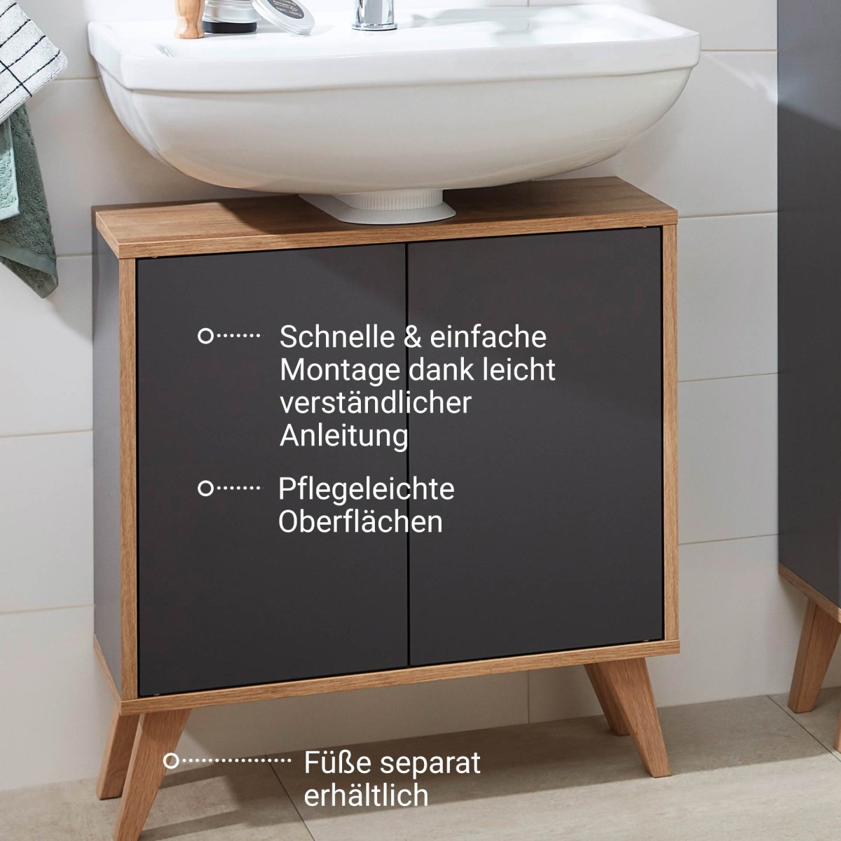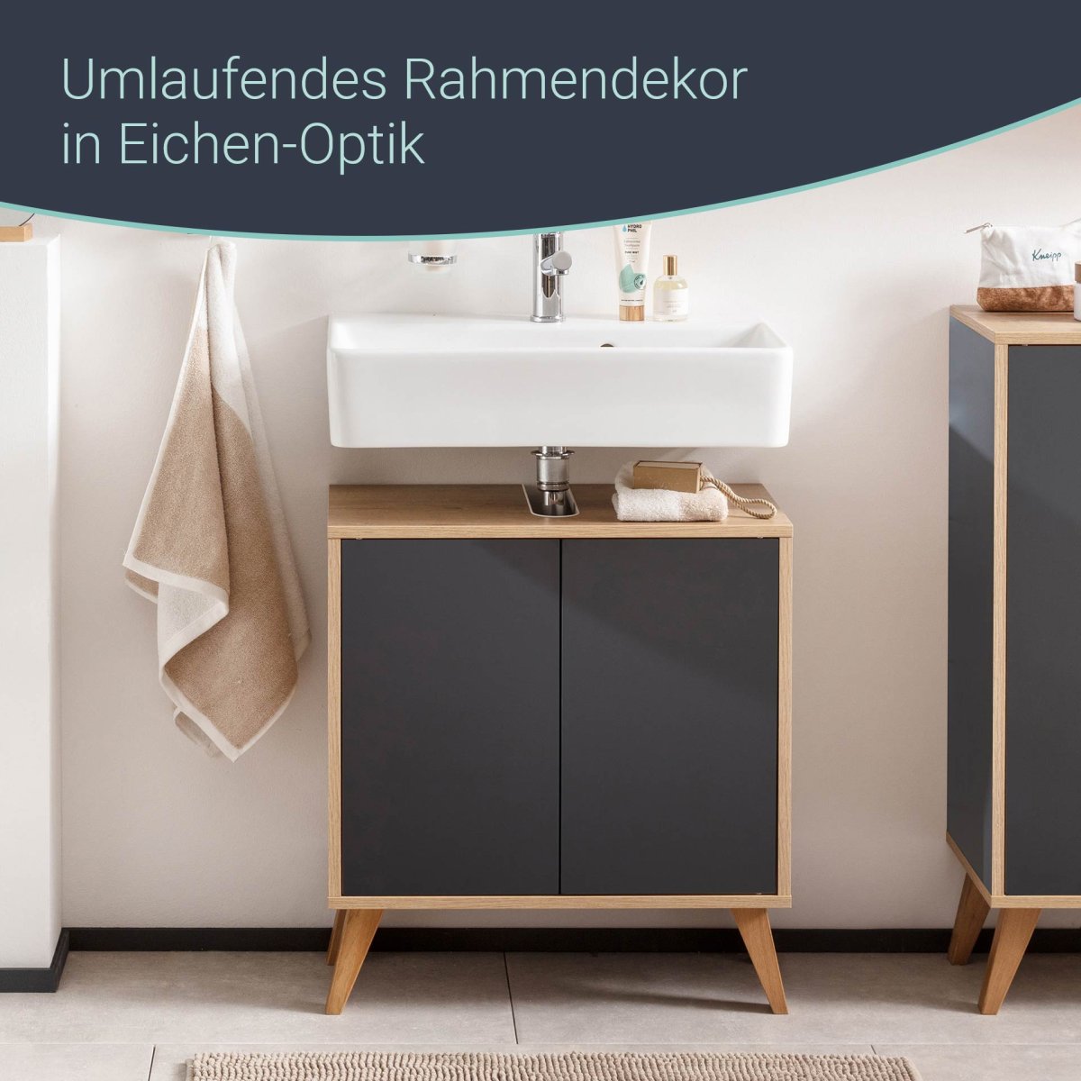 Fackelmann FINN Waschbeckenunterschrank 60 cm, Braun hell/Anthrazit