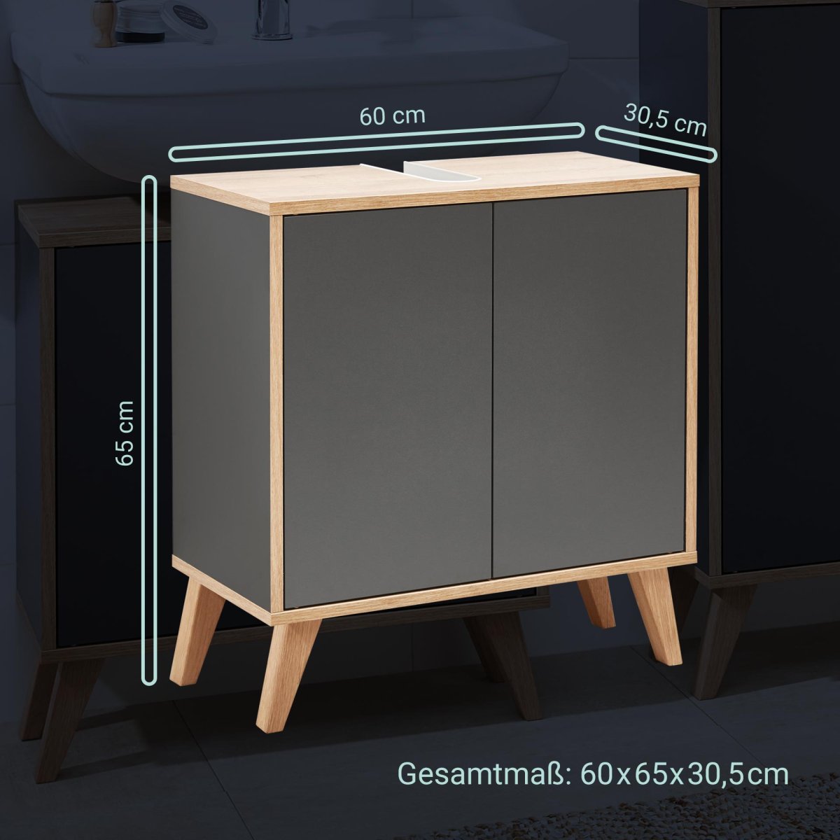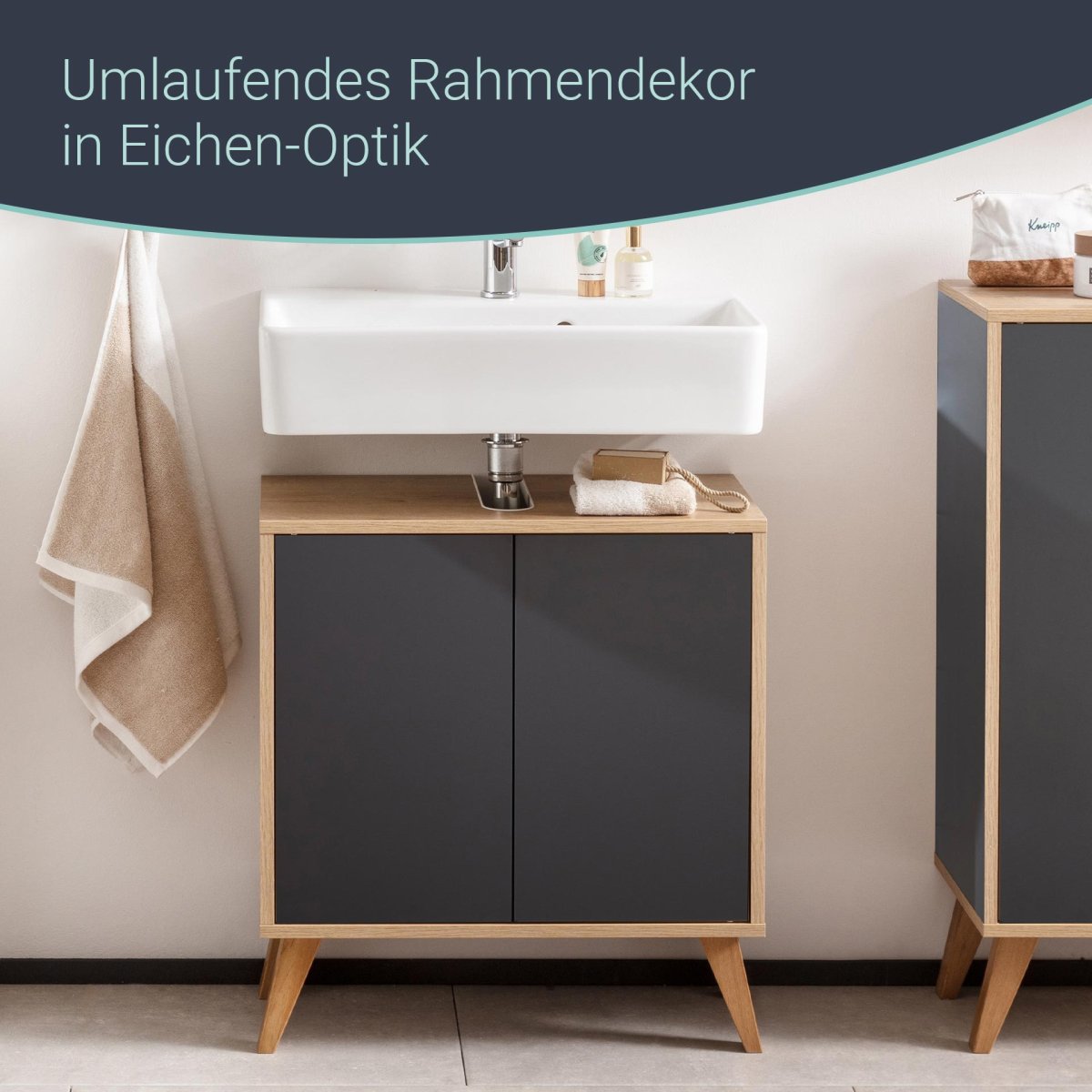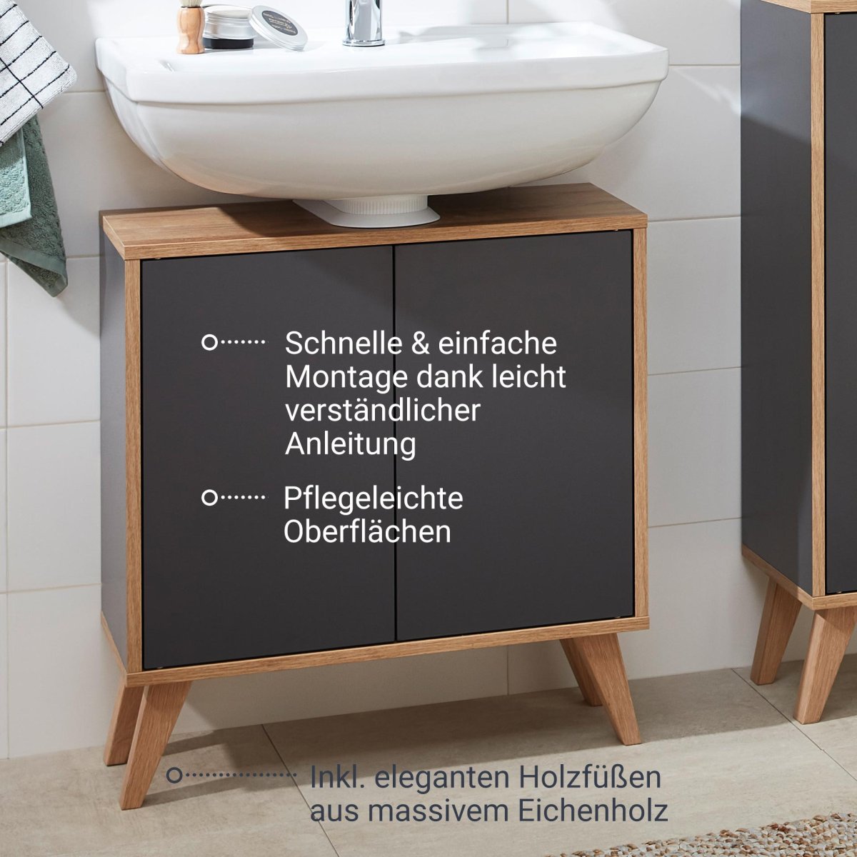 Fackelmann FINN Waschbeckenunterschrank 60 cm breit, Anthrazit/Braun hell + Holzfüße