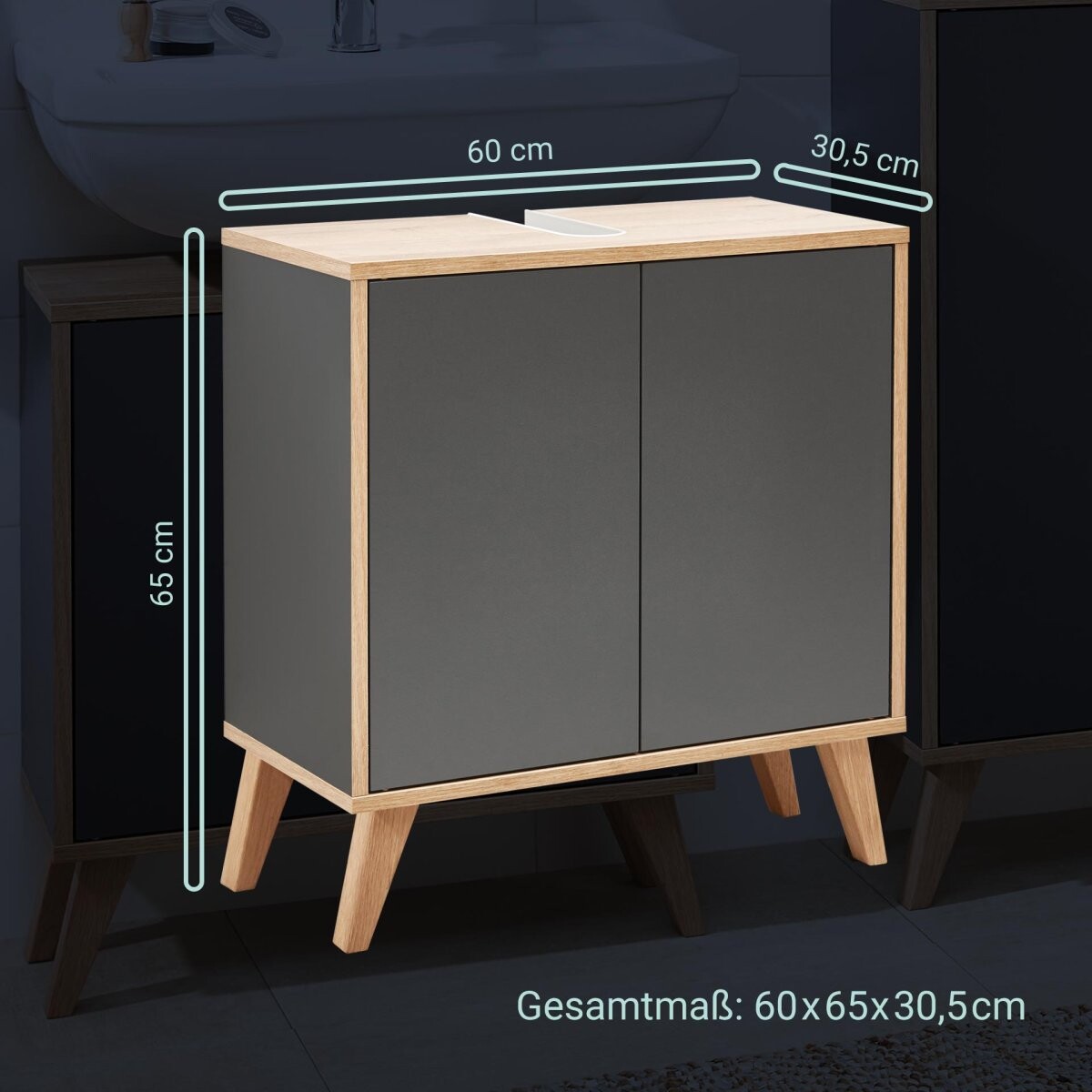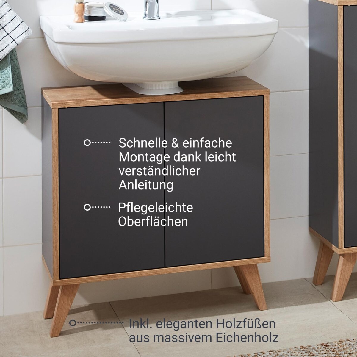 Fackelmann Finn Waschbeckenunterschrank 60 cm breit mit Füßen, Braun hell/Anthrazit