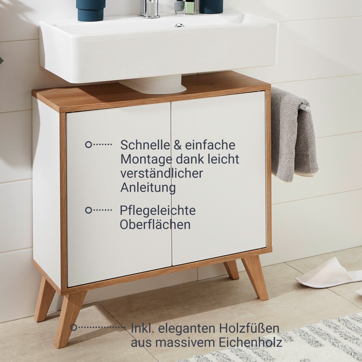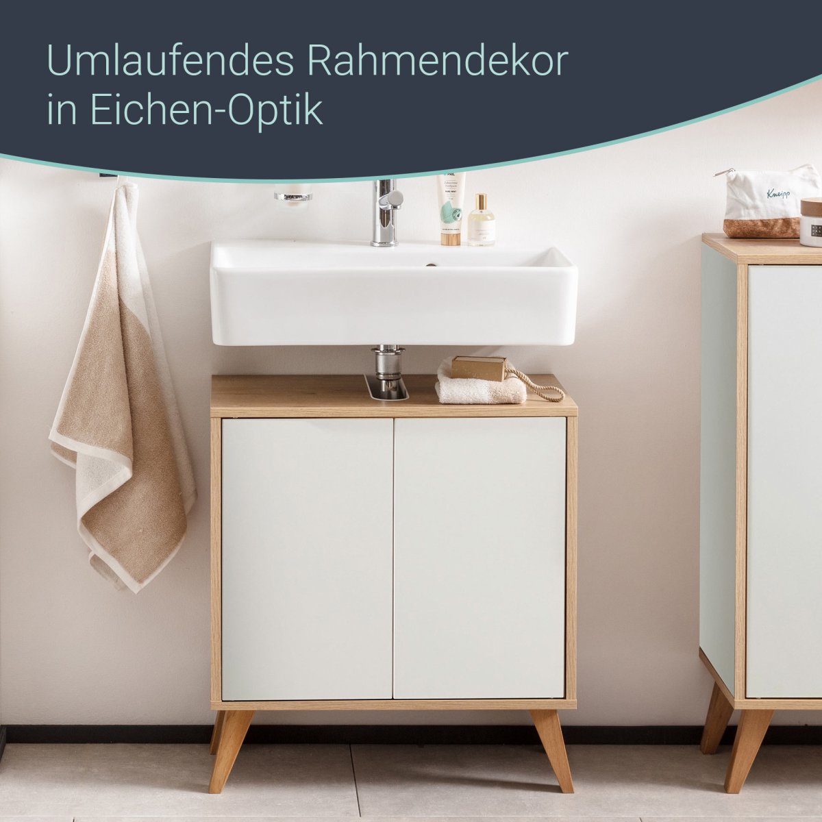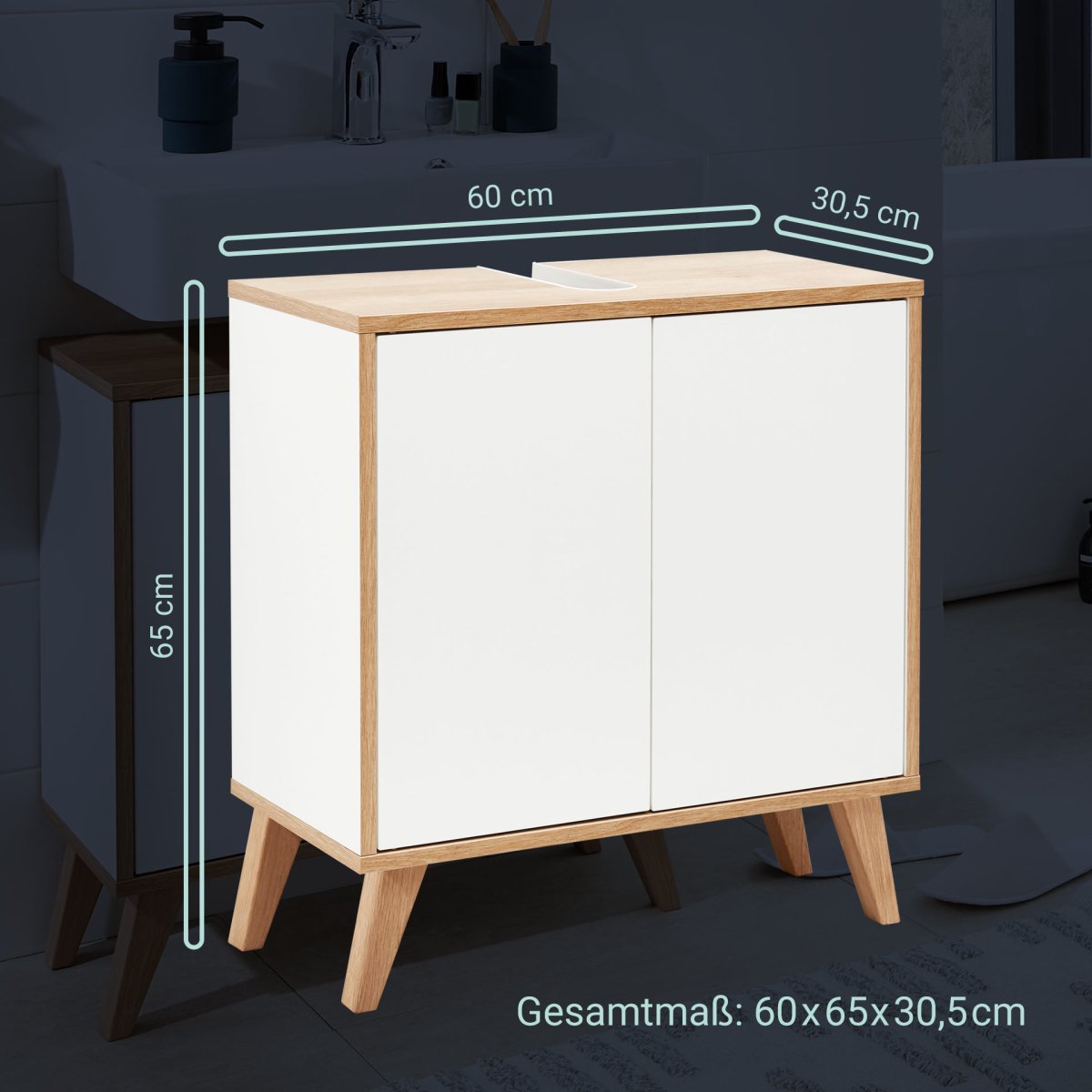 Fackelmann FINN Waschbeckenunterschrank 60 cm breit, Weiß/Braun hell + Holzfüße