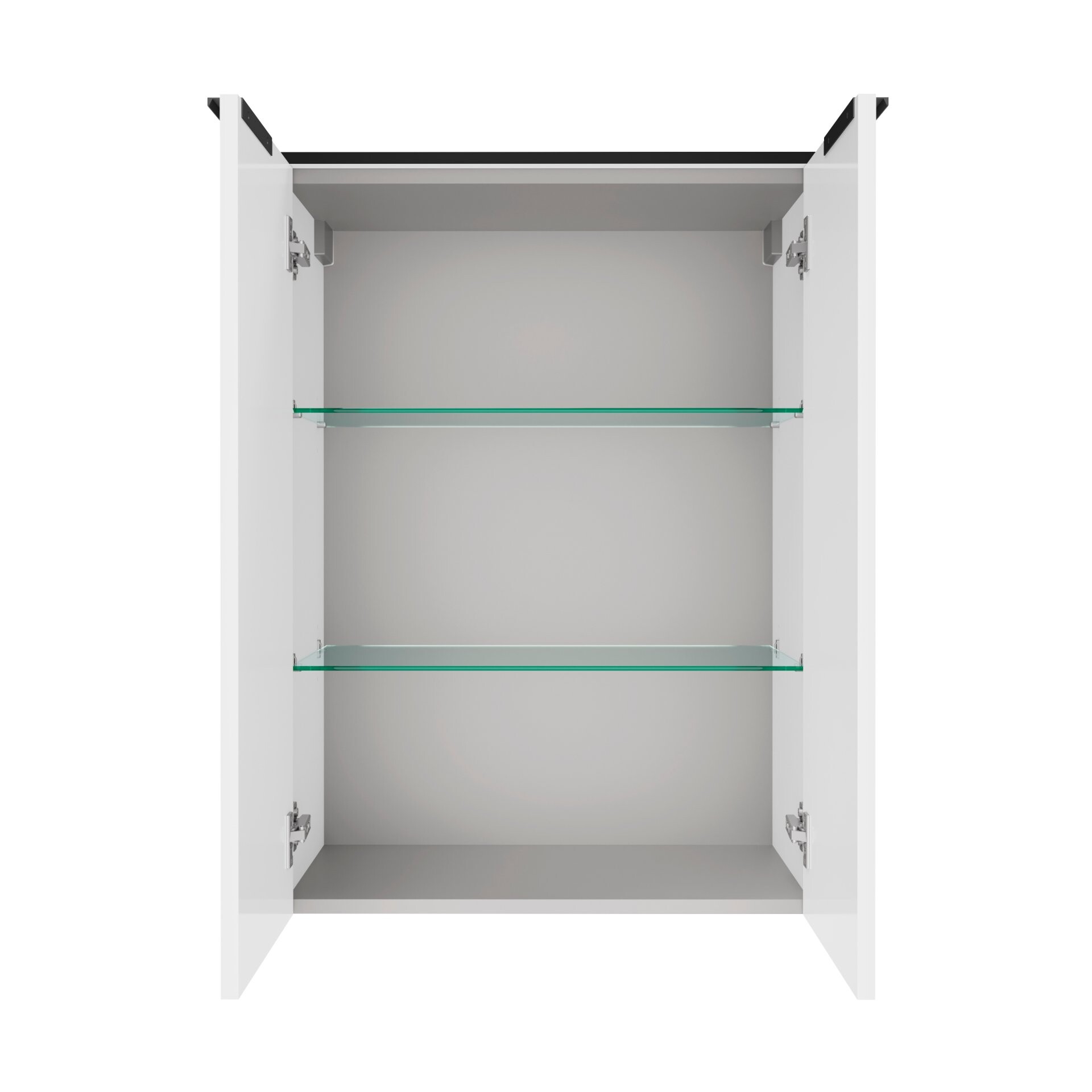 - Ausstattung: 2 Türen mit gedämpften Scharnieren, 2 Glaseinlegeböden