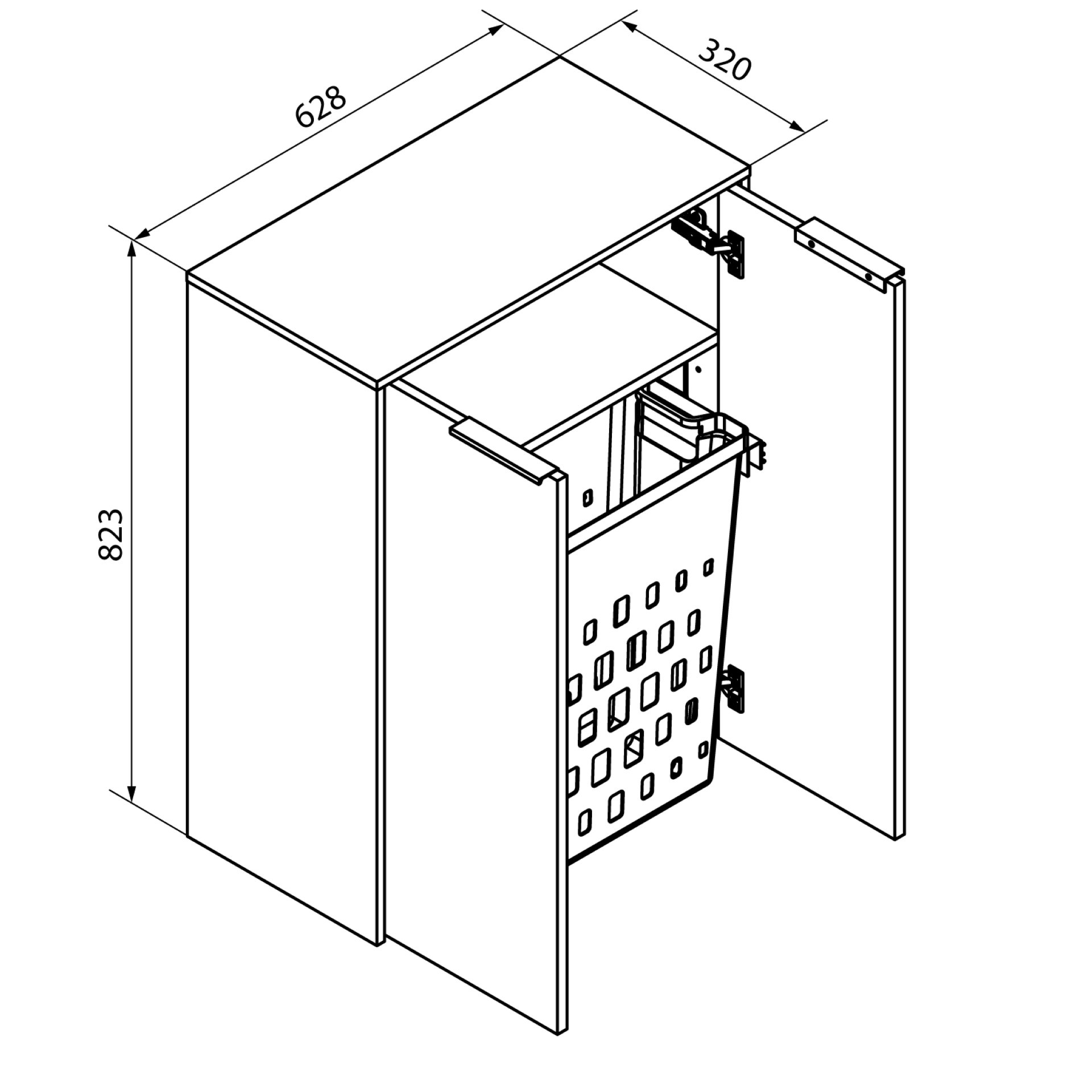 - Maße: 62,8 cm Breite, 82,3 cm Höhe und 32 cm Tiefe