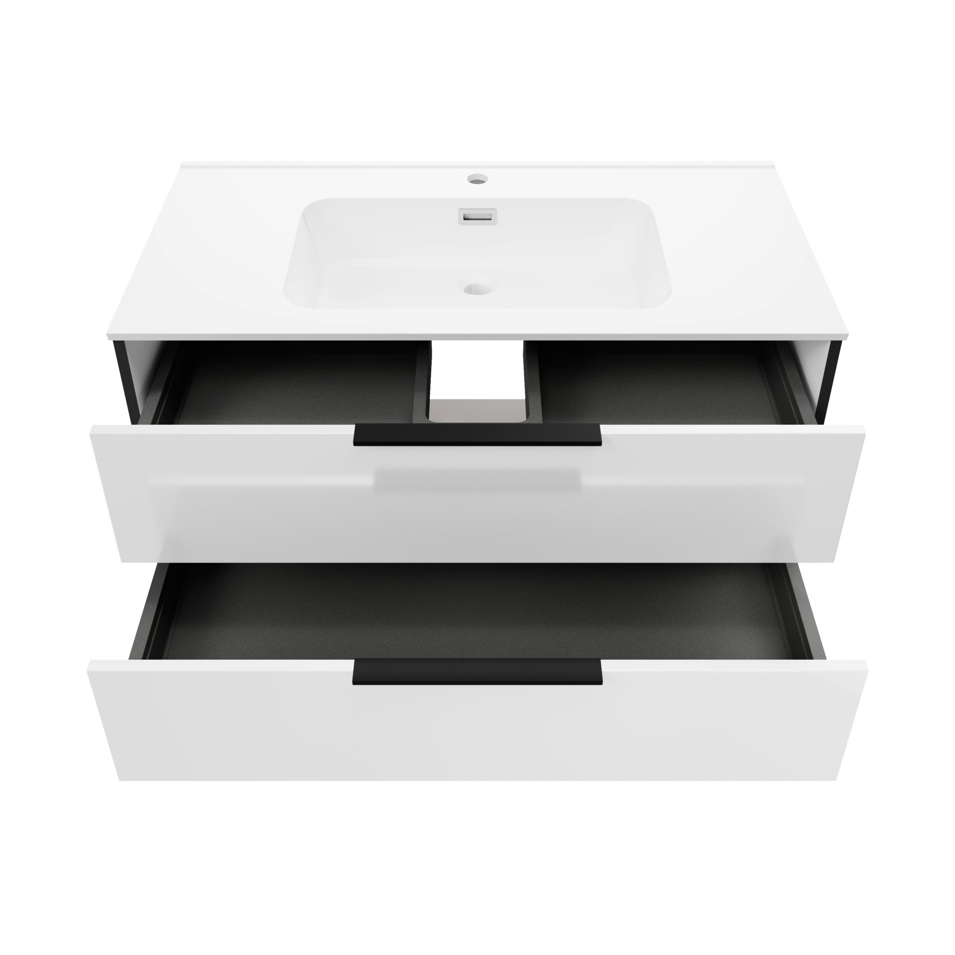 Fackelmann FLAIR Waschbecken mit Unterschrank 101 cm breit, Weiß/Anthrazit, Waschbecken Gussmarmor Weiß matt