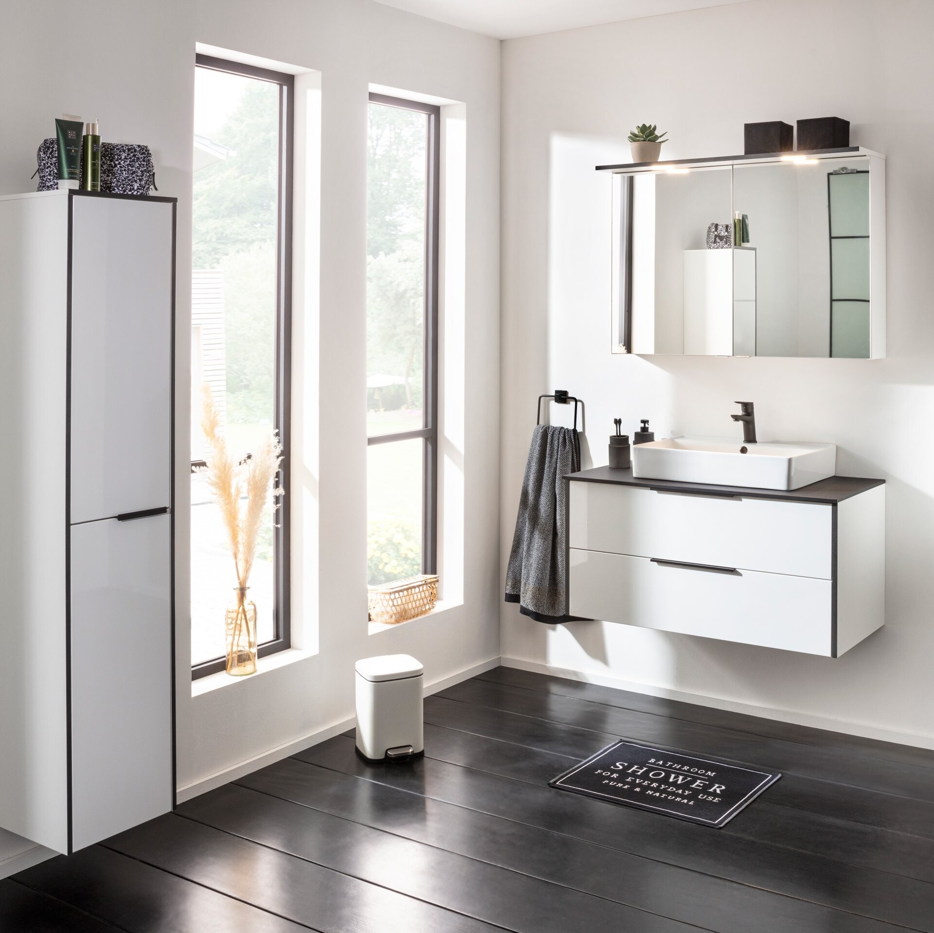 Fackelmann FLAIR Waschbeckenunterschrank 101 cm breit, Weiß/Anthrazit Waschtischplatte Schwarz Schieferstruktur